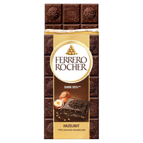 Discover the premium quality of Ferrero Rocher in this luxurious dark chocolate bar format.