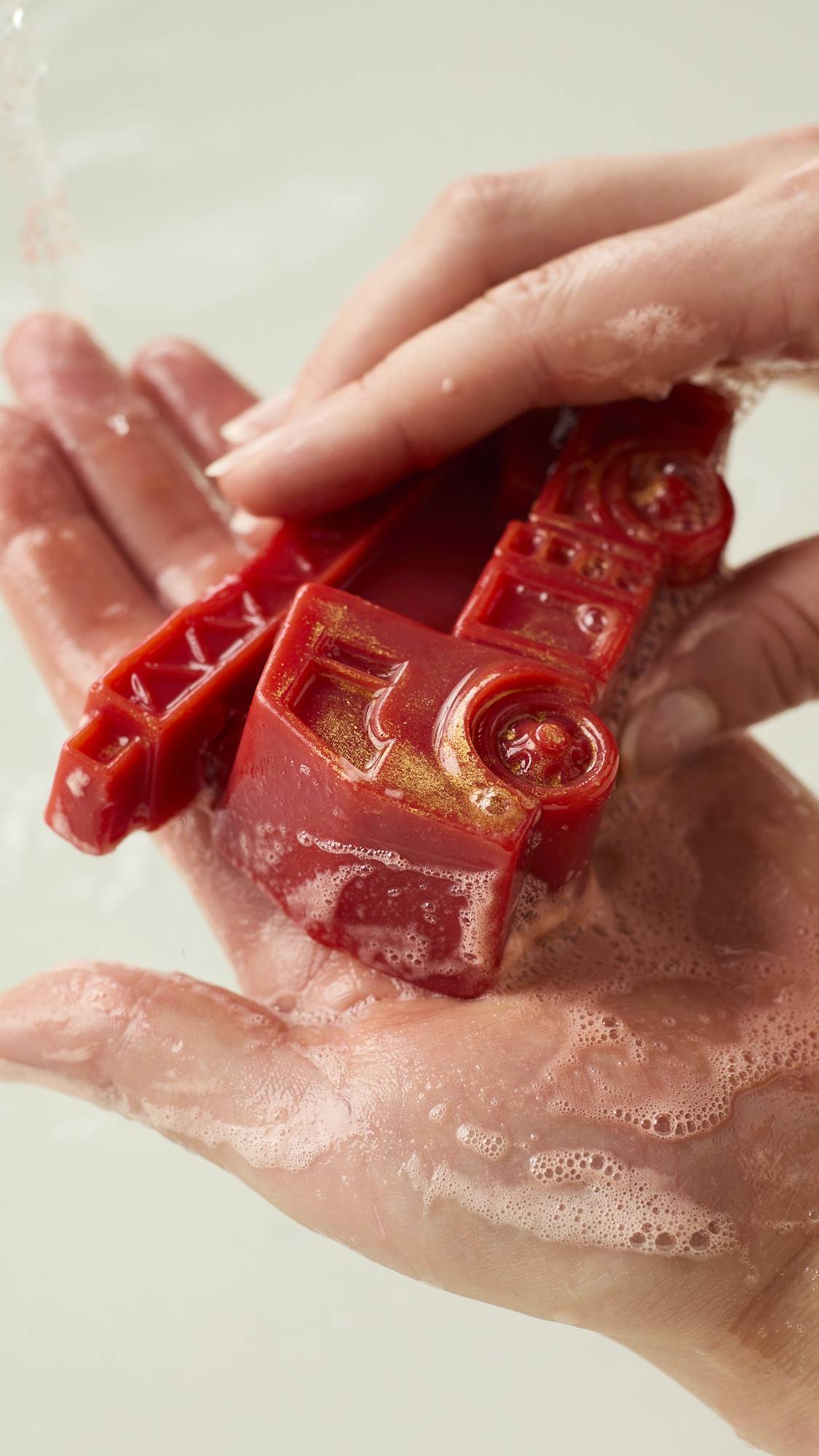 Diese Seife fühlt sich gut an und tut gleichzeitig Gutes! Ein Sud aus Eibischwurzel, Nelkenknospen und Buritiöl sorgt für einen wunderbaren, leicht würzigen Schaum.