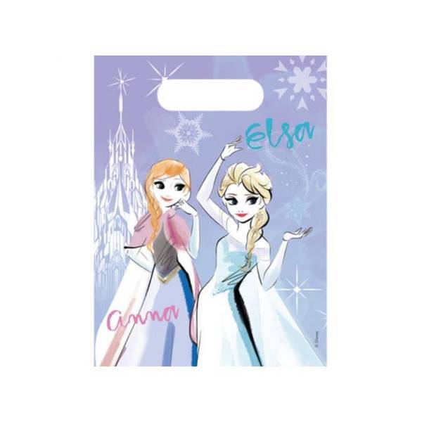 These Frozen Sparkle Party Bags come in a convenient pack of six items. Each bag is constructed from durable plastic and is 100% officially licensed merchandise. They feature beloved characters Anna and Elsa alongside themed graphics for themed events. The practical design ensures easy transport and filling for guests.