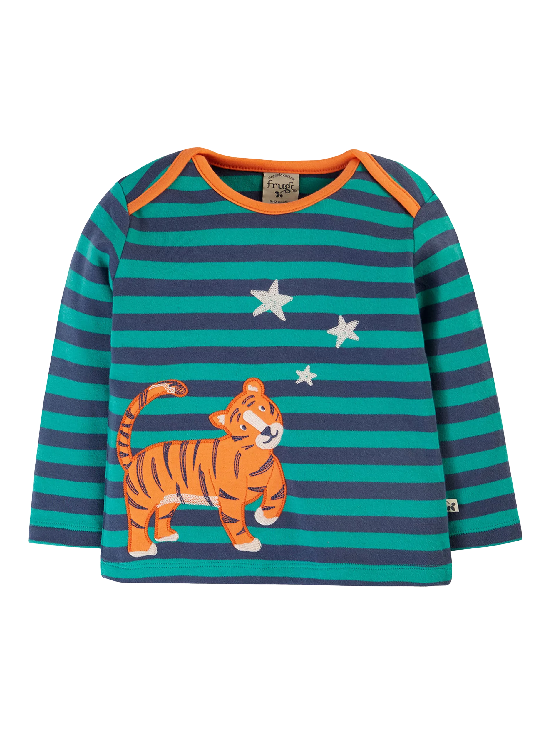 Dieses langärmlige Top von Frugi mit einer hübschen Applikation und praktischem Envelope-Ausschnitt lässt sich leicht anziehen. Gefertigt aus weicher Bio-Baumwolle für ganztägigen Tragekomfort.