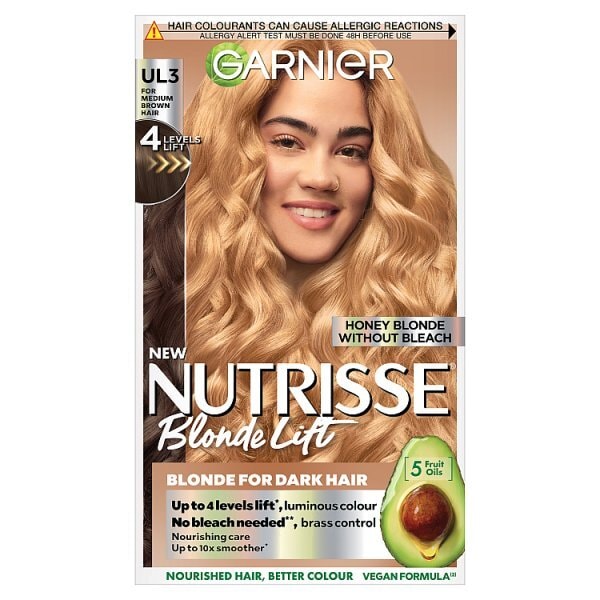 Nutrisse Blonde Lift ist eine lebendige, permanente Farbcreme, die selbst bei dunklem Haar sichtbare Farbergebnisse liefert. Die pflegende, tropffreie Formel ermöglicht ein einfaches Auftragen. Für glänzenderes und gepflegteres Haar in nur einem Schritt.