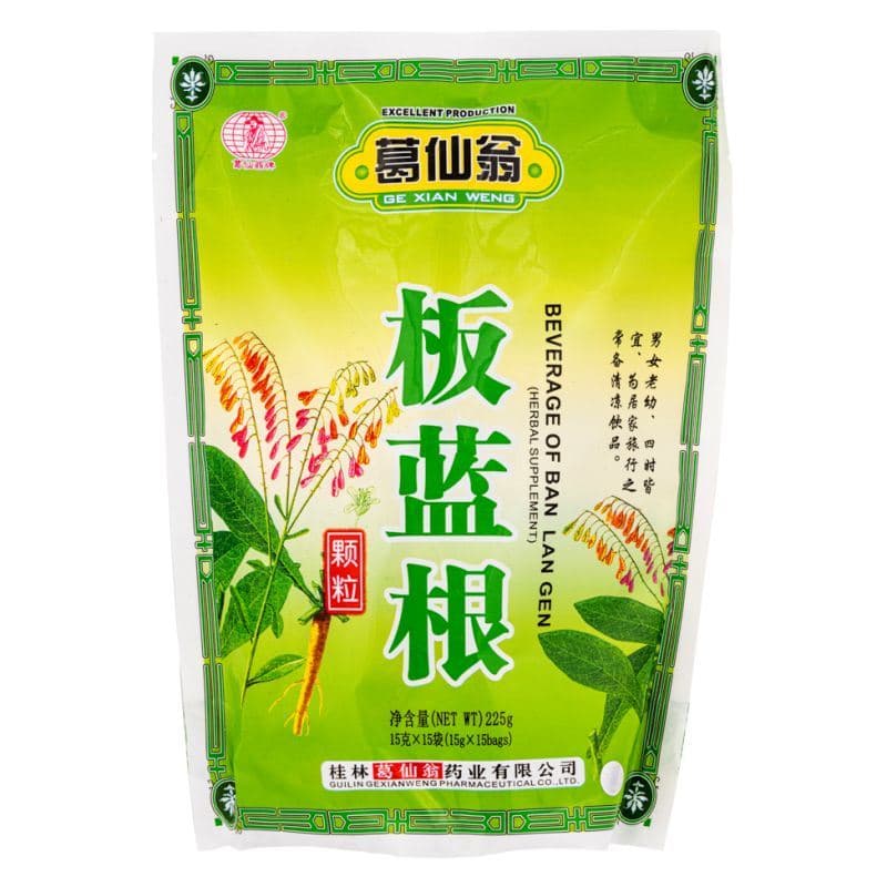 Ge Xian Weng Ban Lan Gen Instant-Kräutertee ist ein chinesischer Kräutertee mit Ban Lan Gen, der chinesischen Bezeichnung für die Wurzel des Färberwaids (Isatis indigotica). Dieser Kräutertee wird häufig zur Unterstützung der Atemwege und zur Förderung des allgemeinen Wohlbefindens verwendet. Ban Lan Gen ist bekannt für seine Fähigkeit, Hitze und Toxine aus dem Körper zu leiten, und wird in der traditionellen chinesischen Medizin häufig bei Beschwerden im Zusammenhang mit Hitze oder feucht-heißen Zuständen eingesetzt.