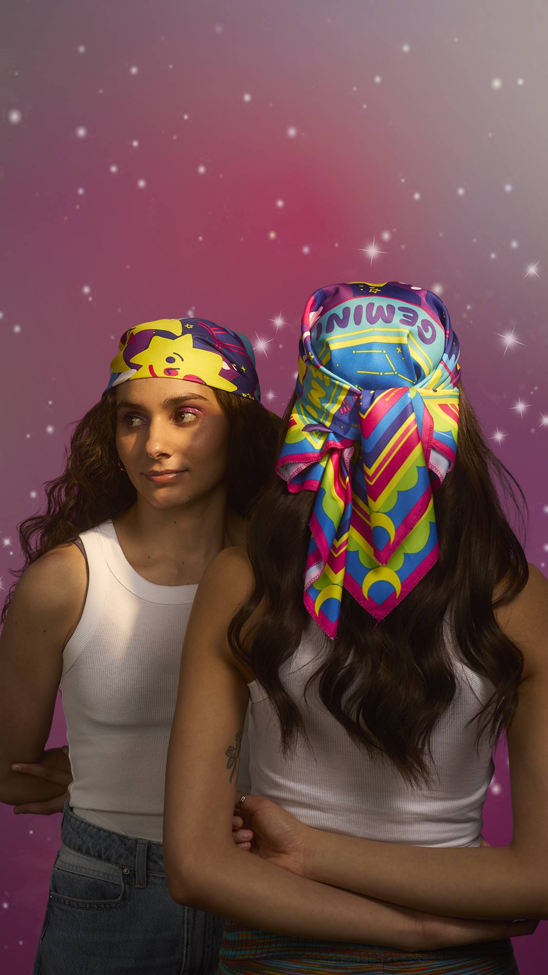 Dieses Knotentuch eignet sich perfekt zum Einwickeln von Lush-Produkten aller Art und kann auch als Halstuch oder Schal getragen werden. Mit seiner Farbpalette aus warmen Rosa-, Lila-, Blau- und Gelbtönen ist es ideal, um ein persönliches Geschenk für den neugierigen und klugen Zwilling in Ihrem Leben zu verpacken!
