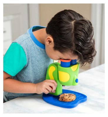 Das Geosafari Jr Mein erstes Mikroskop ist ein voll funktionsfähiges wissenschaftliches Instrument, das von einem Wissenschaftler für junge Vorschulkinder entwickelt wurde, die ihre Welt genau erkunden möchten. Mit seinen extragroßen Okularen und dem griffigen Fokussierknopf ist dieses Lernmikroskop auch für kleine Hände leicht zu bedienen. Die integrierte LED-Beleuchtung sorgt für optimale Ausleuchtung der Präparate und ermöglicht so einfache und spannende Entdeckungsphasen.