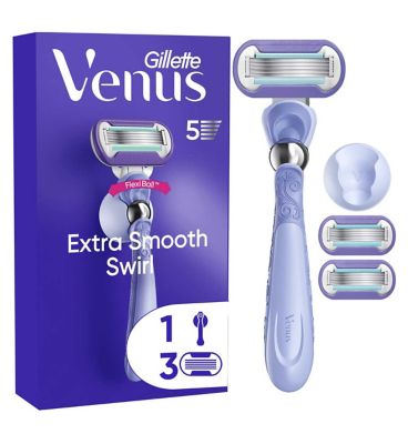 Achieve skin-loving smoothness, even in difficult areas, with the Gillette Venus Extra Smooth Swirl Razor. This razor is engineered to pivot across every curve and angle, ensuring comprehensive coverage during your routine. Its design actively works to help prevent nicks or cuts for a comfortable experience.
