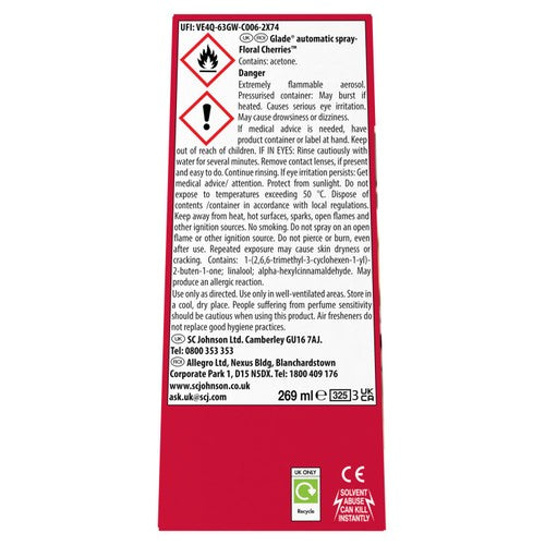 Glade Automatic Spray Air Freshener Holder Refill Floral Cherries