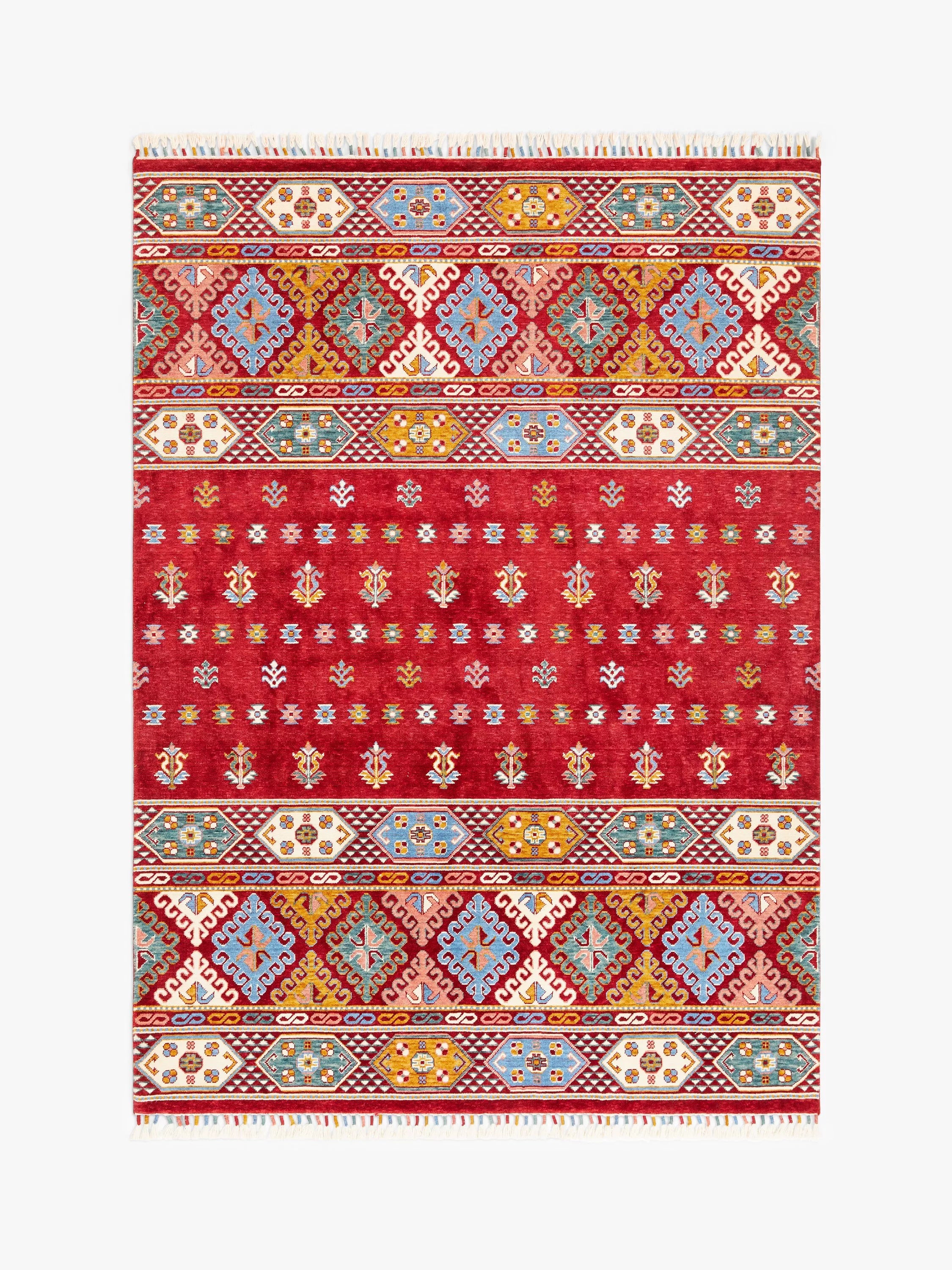 Dieser aus Wolle gewebte Bodenbelag sorgt für ein weiches und warmes Gefühl unter den Füßen und besticht durch ein Muster, das von Generationen traditioneller Teppichgestaltung inspiriert ist.
