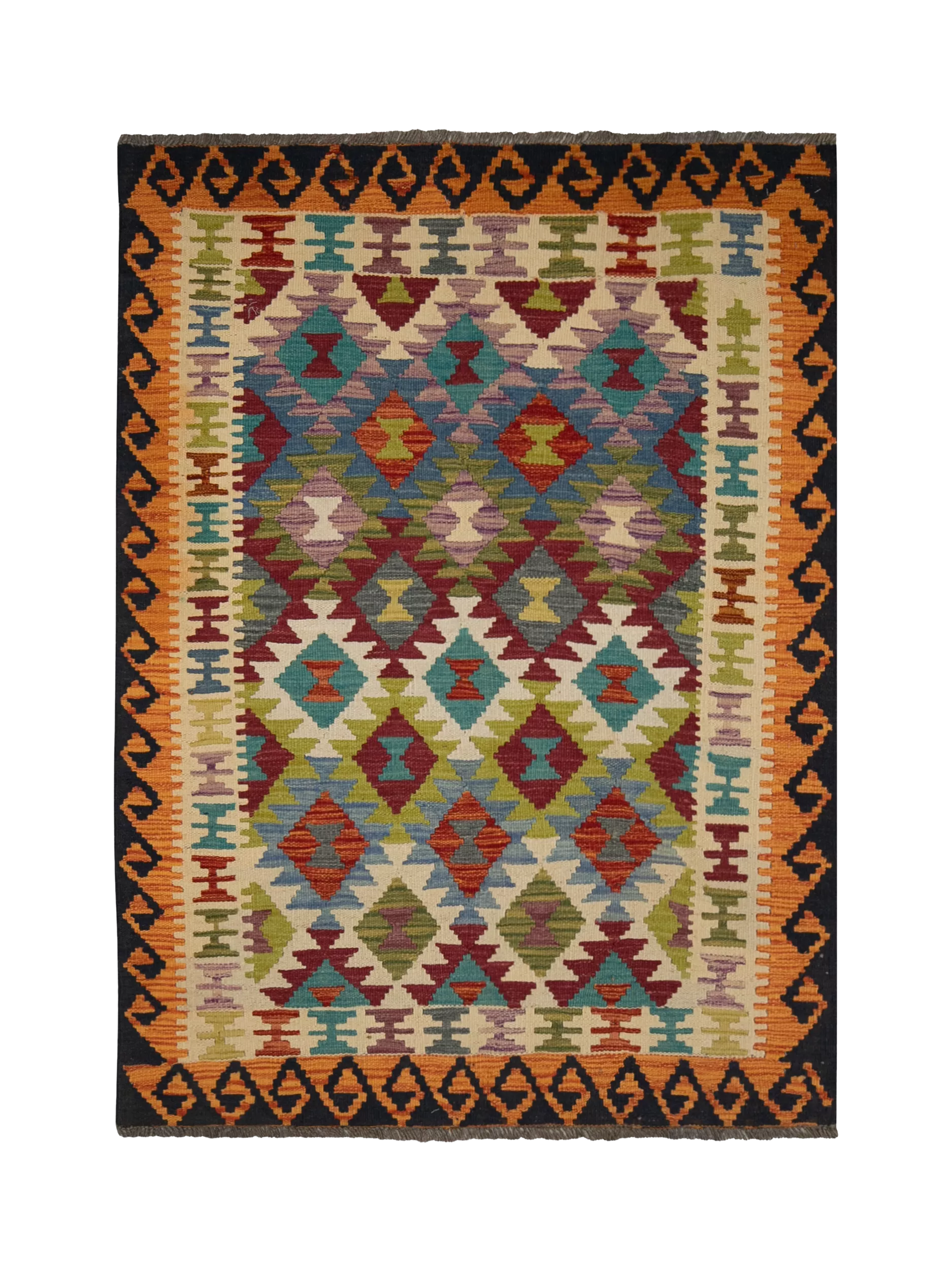 Die Chobi-Kelims/Maimana-Chobi-Kelims werden von Usbeken in der Stadt Maimana und den umliegenden Dörfern im Nordwesten Afghanistans gewebt, bevor sie nach Pakistan transportiert werden, wo sie fachmännisch veredelt und gewaschen werden. Die Maimana-Chobi-Kelims basieren auf traditionellen Mustern des ursprünglichen Maimana-Kelims. Sie zeichnen sich durch ausdrucksstarke geometrische und florale Designs sowie eine beeindruckende, leuchtende Farbpalette aus. Gewebt werden sie aus Wolle auf Baumwollgrund, wobei dieselben traditionellen Färbemethoden wie bei den ursprünglichen Webern angewendet werden.