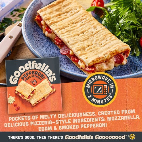Goodfellas Pepperoni Pizza Pockets deliver a quick, satisfying pizza snack experience without compromising flavour. These folded pockets use a soft base filled with classic toppings for an enjoyable bite. They are specifically designed for incredibly fast preparation straight from the freezer.