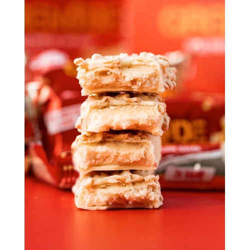 This Grenade bar features a triple-layered construction combining salted peanuts, soft nougat, and smooth caramel. It is enrobed in a satisfying white chocolate coating for complex flavour and texture. This high-protein bar is formulated to offer substantial protein content while minimising unwanted sugars.