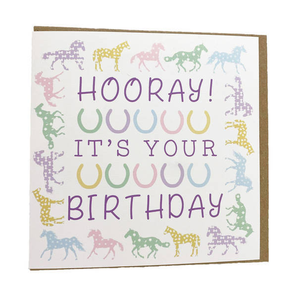 This square Gubblecote Hooray Card provides a delightful way to send your best wishes for any occasion. Featuring a detailed horse design, this FSC certified stationery item is crafted with attention to quality and responsible sourcing. The card measures 150mm by 150mm, making it a substantial choice for your correspondence.