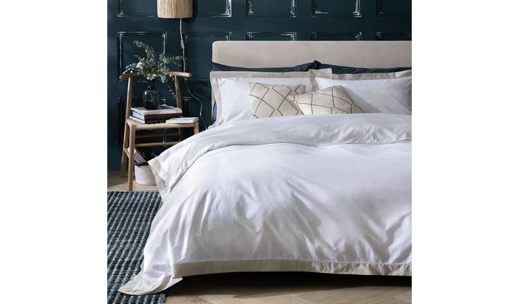 Achieve a classically smart look with this Habitat King size duvet set, featuring an elegant Oxford border detail. This design recalls luxury country hotels, updated with a white finish and a contrasting warm cream edge. It is crafted from 100% cotton percale, providing a softly smooth feel for restful sleep.