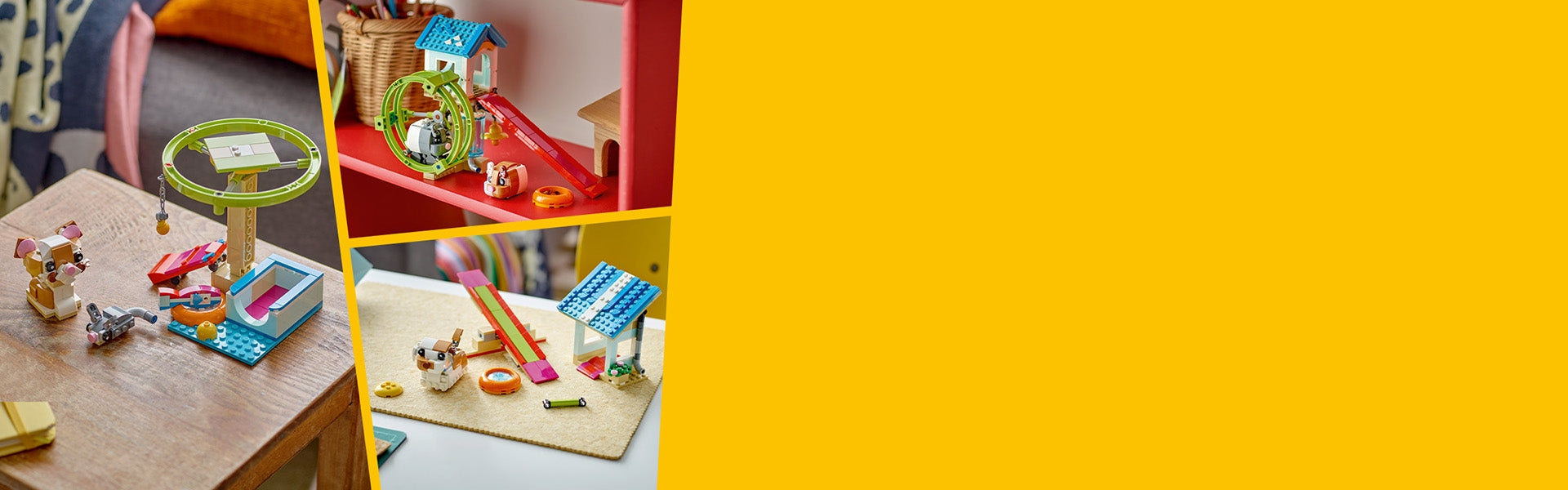 Dieses LEGO® Creator Set bietet Kindern drei verschiedene Spielzeugtiere zum Bauen aus denselben Steinen. Sie können ein Hamsterhaus bauen, es in einen Katzenspielplatz mit Laufrad und Skateboard umgestalten oder eine Hundehütte, in der ein Hund eine Rampe hinunterrutschen und mit coolen Spielsachen spielen kann.
