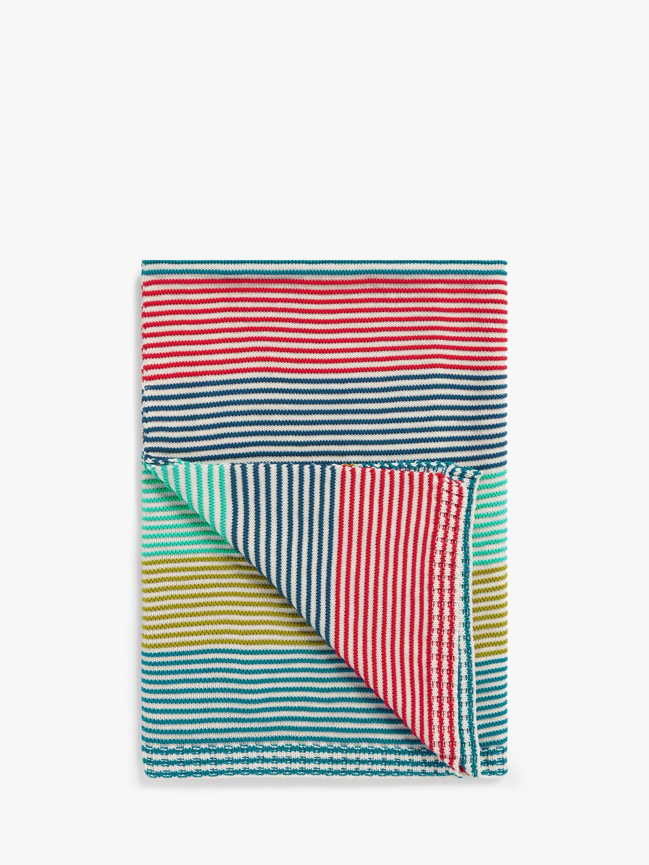 Diese wunderschön gestrickte Decke von Harlequin mit ihrer dezenten Struktur und dem farbenfrohen Streifenmuster bringt Lebendigkeit ins Kinderzimmer. Sie ist die perfekte zusätzliche Schicht für kühle Nächte.