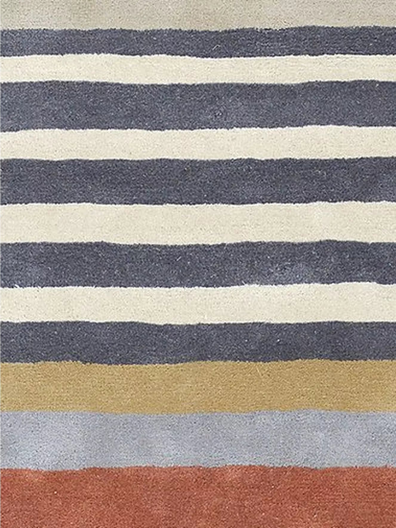 Der Rosita-Teppich von Harlequin ist eine modernere Interpretation eines klassischen Streifenmusters. Er besteht aus 100 % Wolle und ist handgetuftet, was ihm ein luxuriös weiches und dennoch robustes Gefühl verleiht.