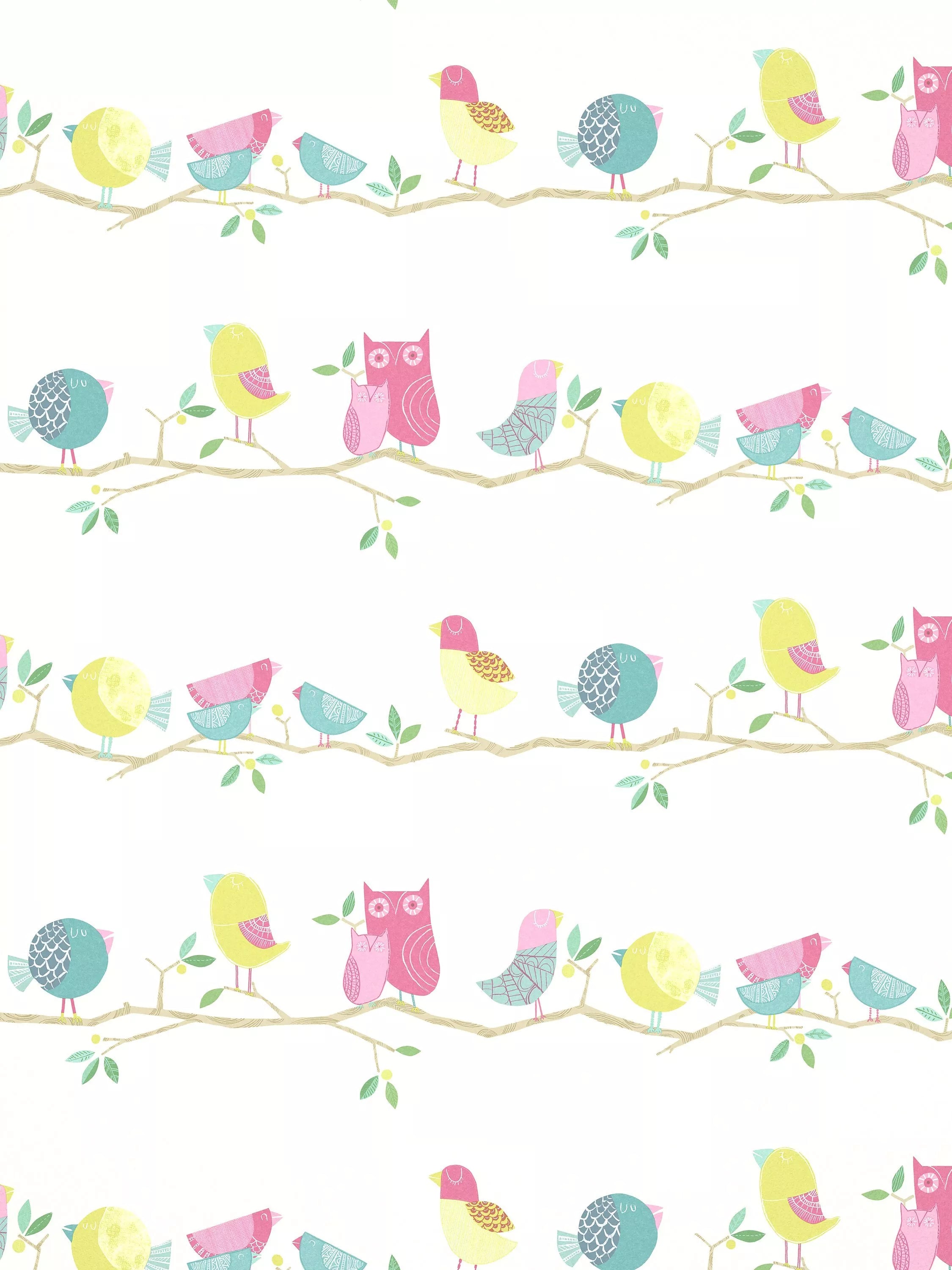 Liebenswerte Eulen sitzen hoch oben in den Baumwipfeln und unterhalten sich mit ihren farbenfrohen Waldgefährten.