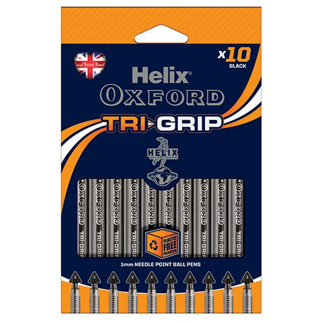 Helix Oxford Pack of 10 Trigrip Pens - Black