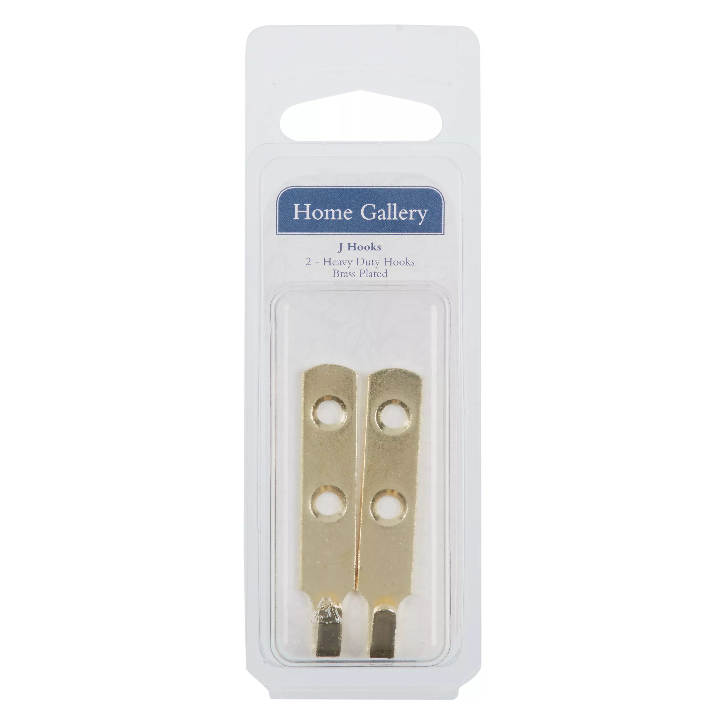2er-Packung robuste, messingbeschichtete J-Haken. Ideal für große Spiegel.