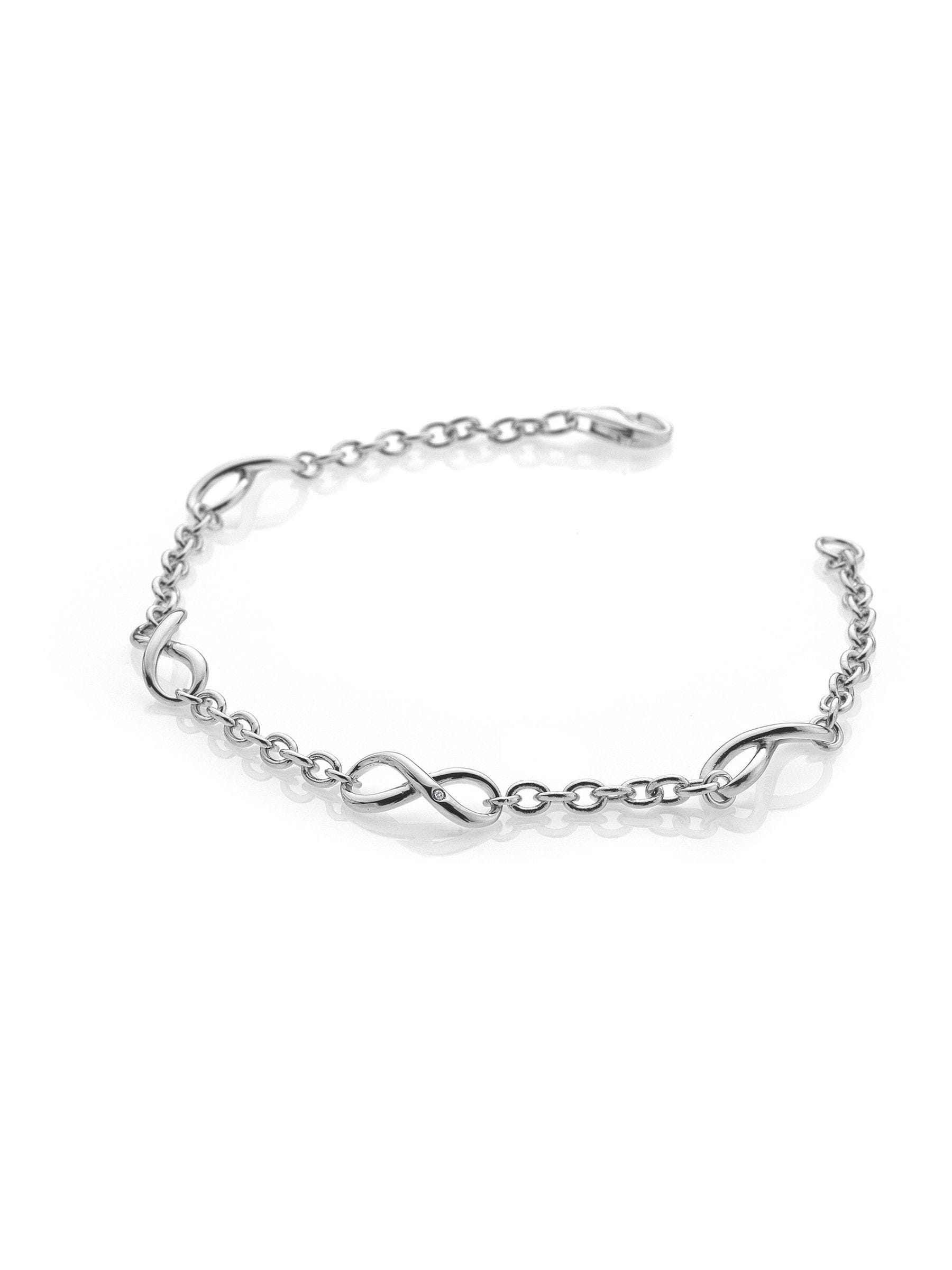 Aus der Forever-Kollektion: Die Fresh-Kollektion verkörpert die ewige Liebe. Dieses 190 mm lange Infinity-Armband ist mit vier Achter-Symbolen von je 15 mm Durchmesser verziert. Wie immer mit einem echten Diamanten von einem Karat besetzt.