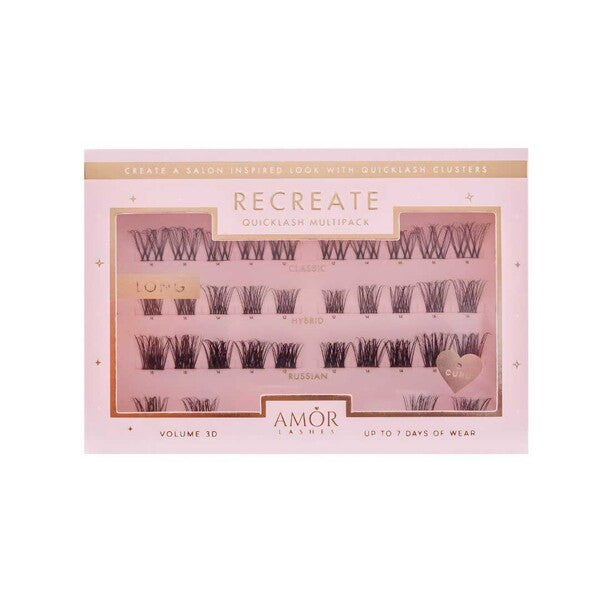 The House of Amor RECREATE' Mixed Clusters set allows you to achieve varied lash looks entirely at home. This versatile pack provides the components necessary to create classic, hybrid, and Russian lash styles using individual cluster sections.