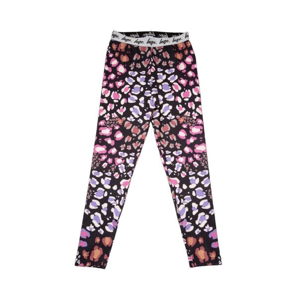 95 % Polyester, 5 % Elastan, Leopardenmuster, Schriftzug am Bund, Markenlogo, elastischer, breiter Bund, taillierte Passform, knöchellang
