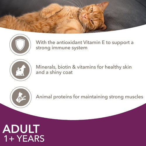 Discover the Iams Delights Land & Sea Collection, offering complete and balanced nutrition specifically formulated for adult cats. These irresistible recipes feature succulent pieces of real meat and quality fish, perfectly served in a savoury gravy your feline companion will adore. Each serving is crafted with **99% animal protein** to support your cat's natural dietary needs. Furthermore, the formula is fortified with **Antioxidant Vitamin E** to help maintain a strong, healthy immune system.
