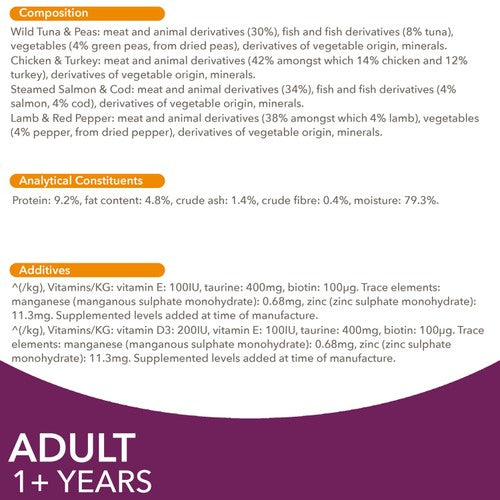 You can rest assured knowing that this premium wet food contains **no added sugar, fillers, artificial colours, or artificial flavours**. This multipack delivers consistent quality across all its delectable varieties, making daily feeding both nutritious and enjoyable. Give your cat the taste they crave and the complete sustenance they require with Iams Delights.