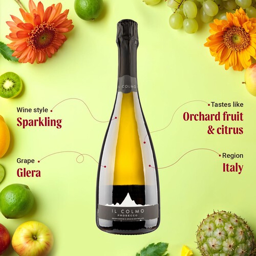 Il Colmo Prosecco Brut offers a refreshing quality ideal for welcoming guests or enjoying solo.