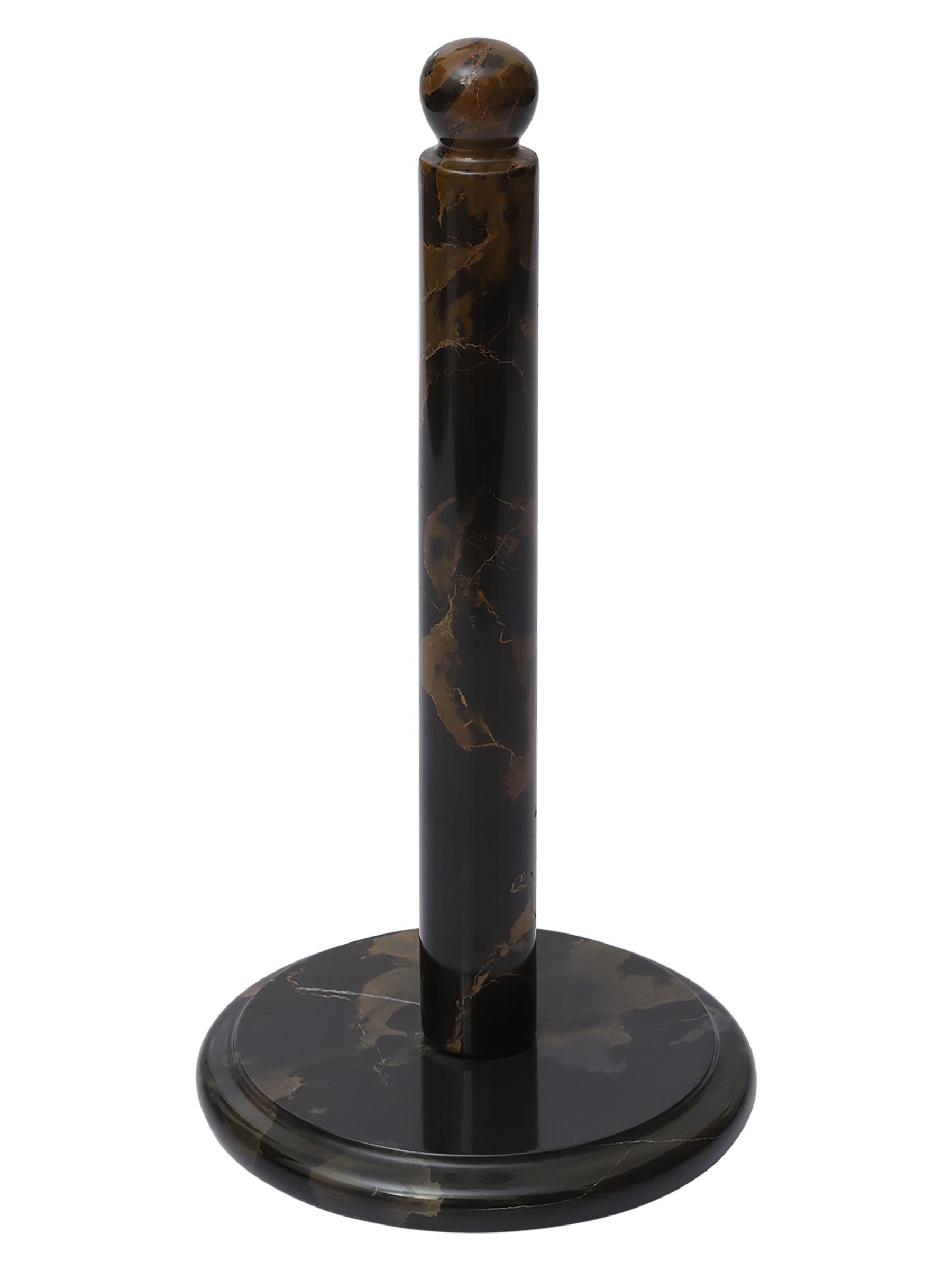 Black and gold marble kitchen roll holder with round base