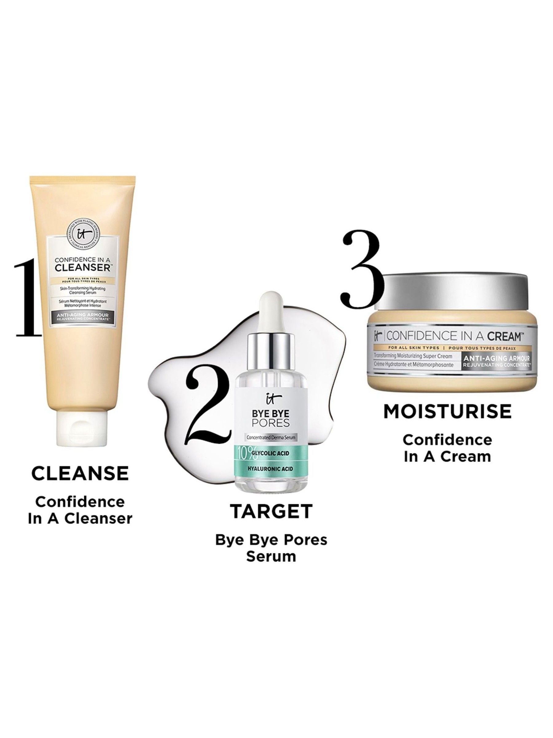 Verstopfte und vergrößerte Poren werden deutlicher sichtbar. Das Serum mit 10 % Glykolsäure peelt und verfeinert die Hautstruktur, während Hyaluronsäure die Haut mit Feuchtigkeit versorgt und für ein angenehmes Hautgefühl sorgt.