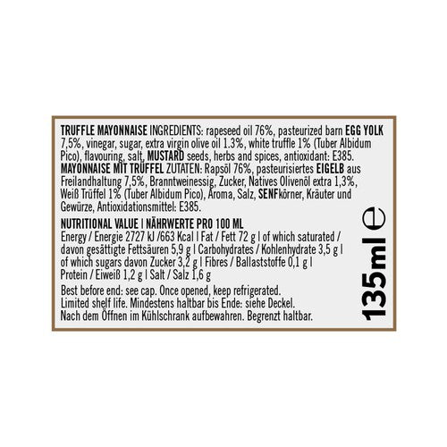 • Made with the rare, small white truffle, 'Tuber Albidum Pico'.