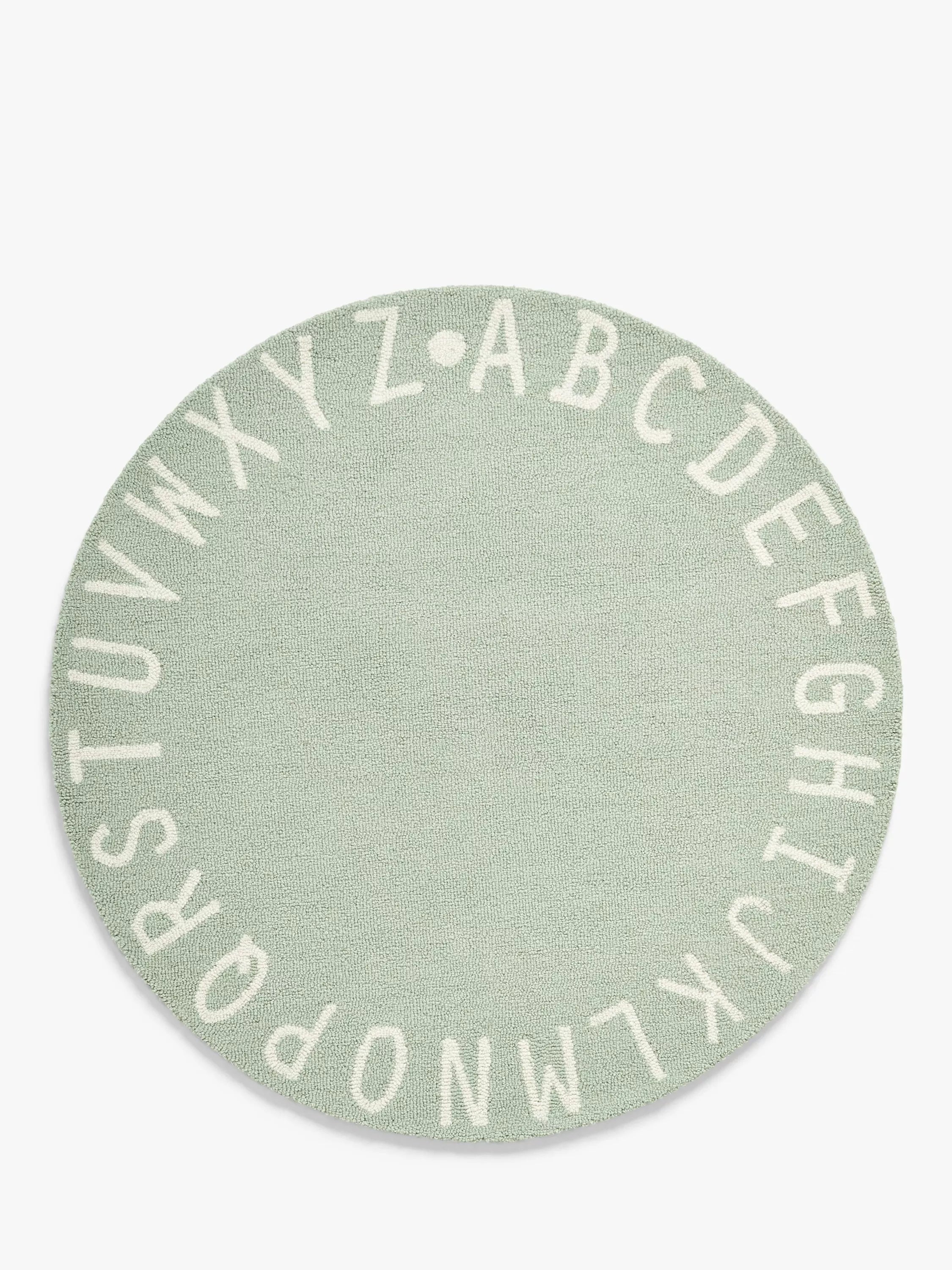 Dieser aus reiner Wolle gefertigte Teppich bietet kleinen Kindern eine weiche Spiel- und Lernfläche. Die Bordüre mit Buchstabenmotiven fördert das Erlernen der Buchstaben, und die Farbe des handgetufteten Teppichs verleiht jedem Raum Frische.