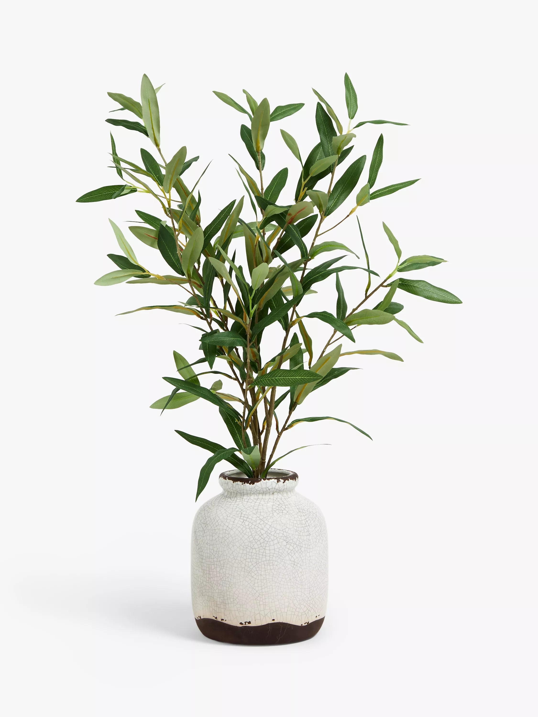 Das Beste, was man sich nach mediterraner Sonne für zu Hause wünschen kann. Diese künstliche Olive in einer Keramikvase mit Craquelé-Glasur bringt wärmere Gefilde in jeden Raum. Sie ist sehr pflegeleicht – ab und zu einfach abstauben.