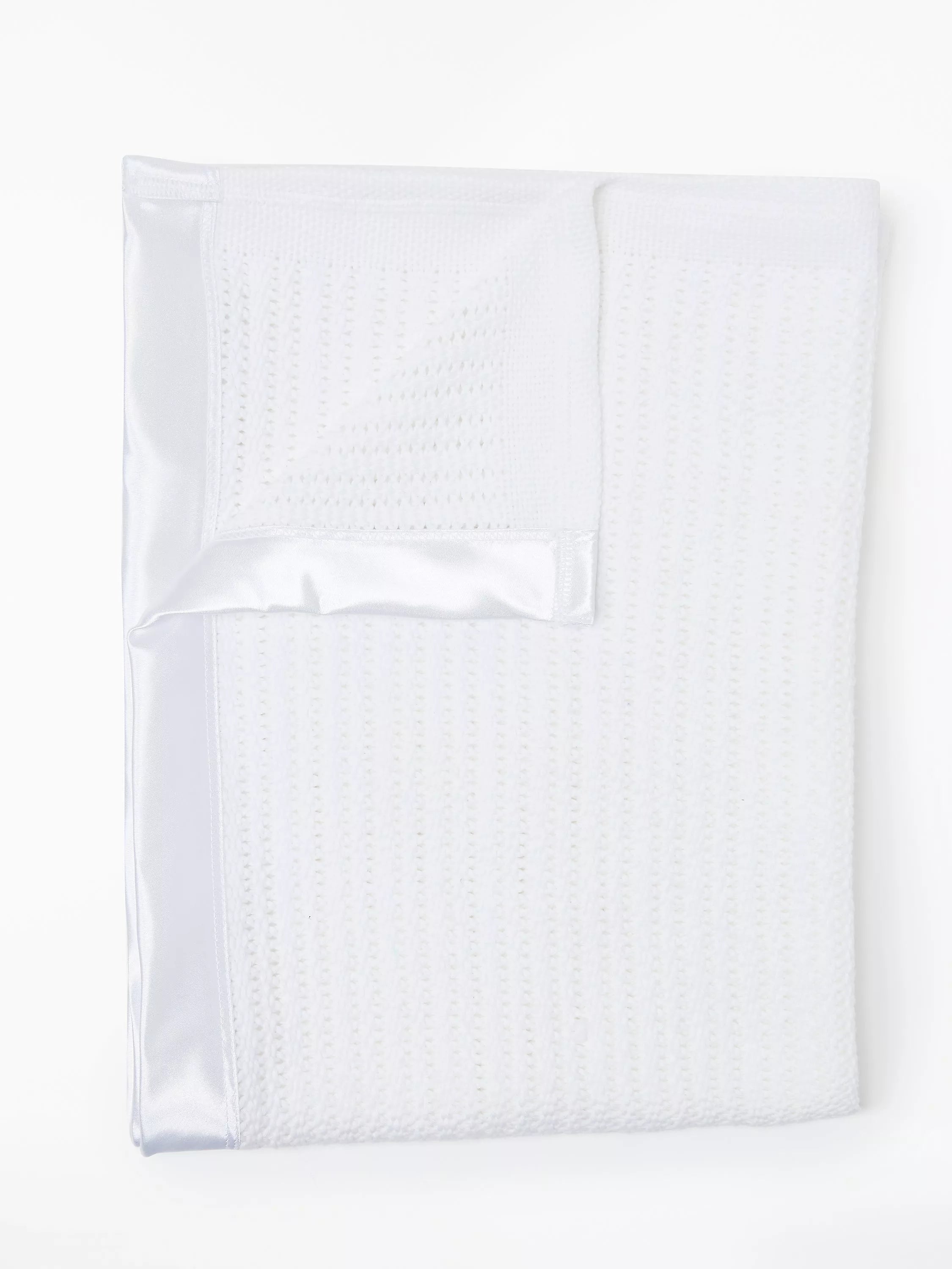 Our gorgeous baby cellular blanket is made lovingly in the UK from pure GOTS certified organic cotton, with a satin trim around the border for a premium feel and ultimate softness. Use it to lay over baby in your arms, in the pram or in the cot, choosing from a beautiful array of colours. It makes a great gift idea for a new baby or baby shower, too.