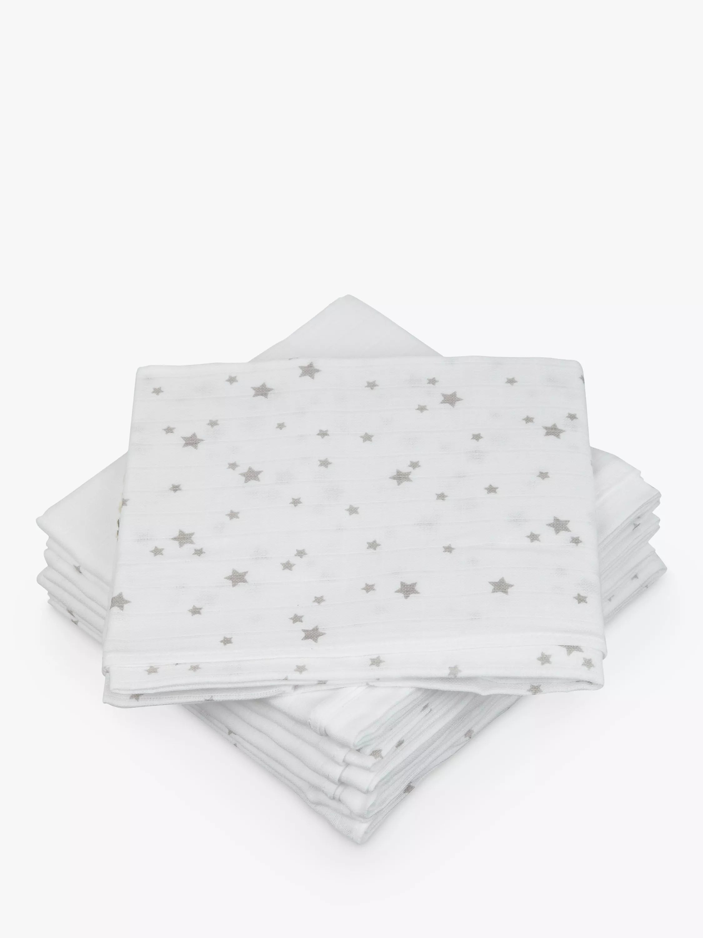 John Lewis Baby Muslins - 6 Pack, Grey Stars, 70x70cm