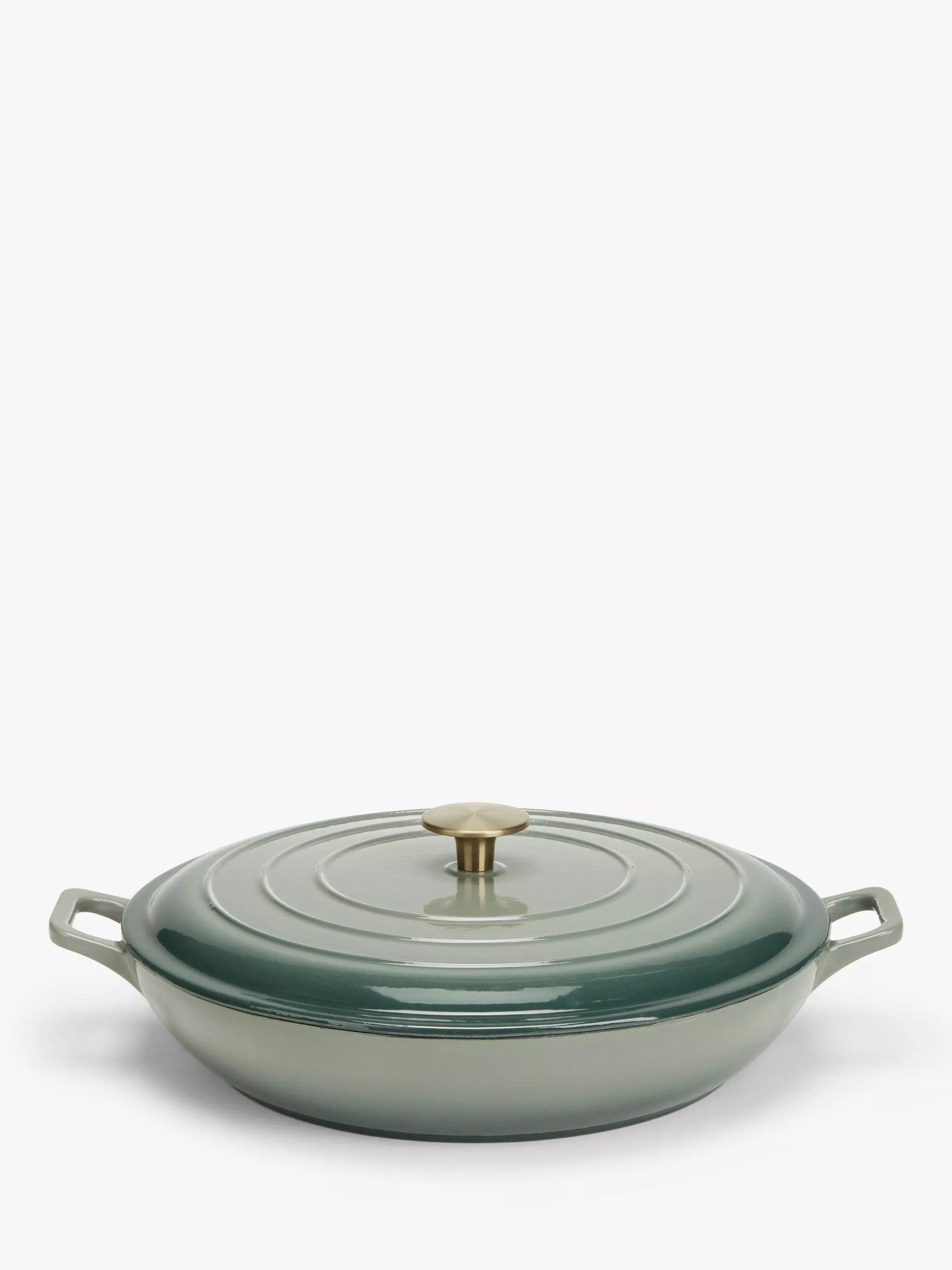 Unser stilvolles und modernes Gusseisen-Kochgeschirr bietet alle Vorteile des traditionellen Kochens mit Gusseisen. Robust und mit hervorragender Wärmespeicherung, wodurch beim Kochen Energie gespart wird, ist dieser Schmortopf vielseitig einsetzbar: zum Pochieren und Schmoren auf dem Herd oder zum Braten und Langsamgaren im Backofen.