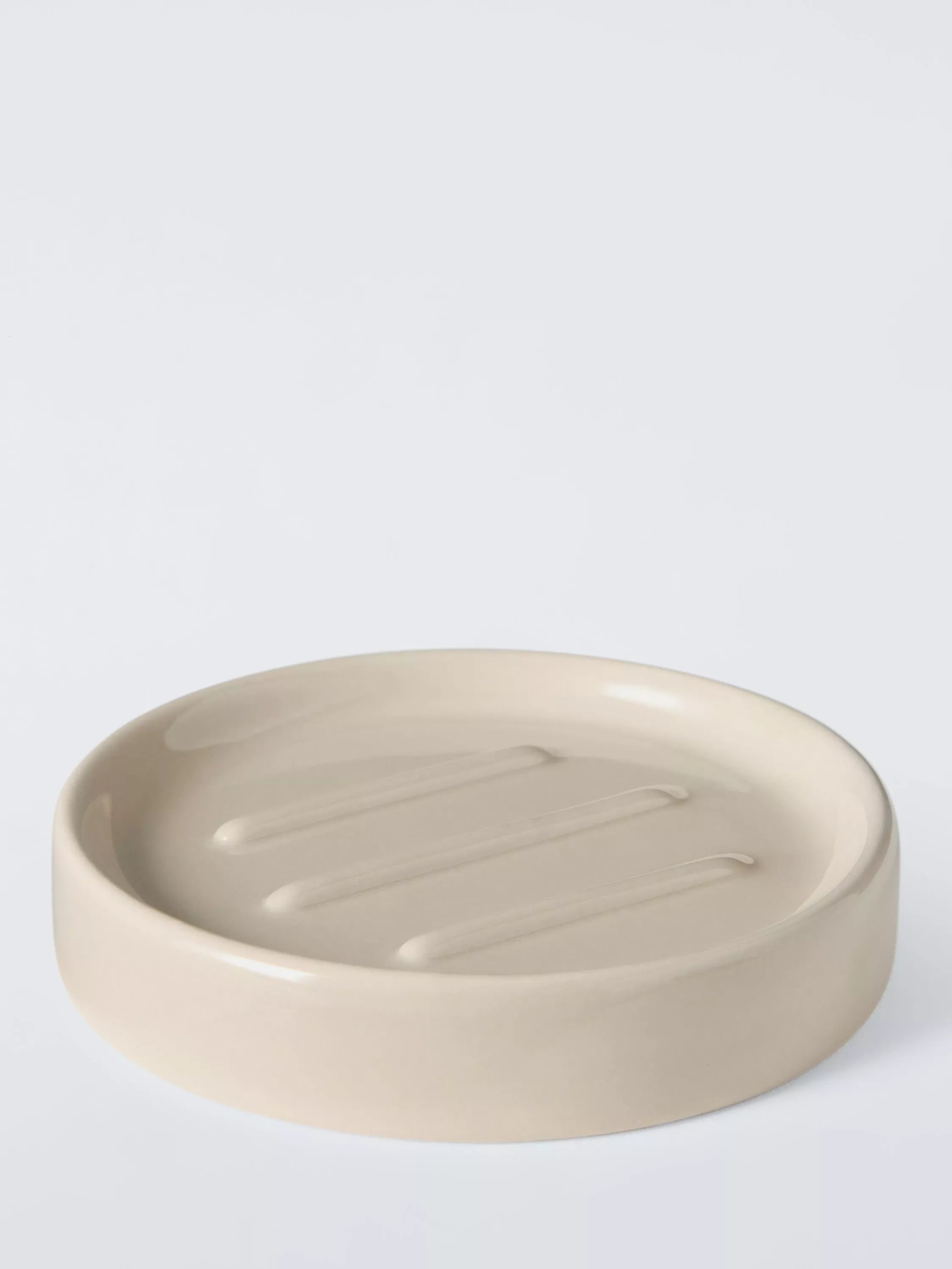 Diese runde Seifenschale aus glasierter Keramik passt perfekt neben Ihr Waschbecken oder Ihre Badewanne und ist in verschiedenen Farben erhältlich.