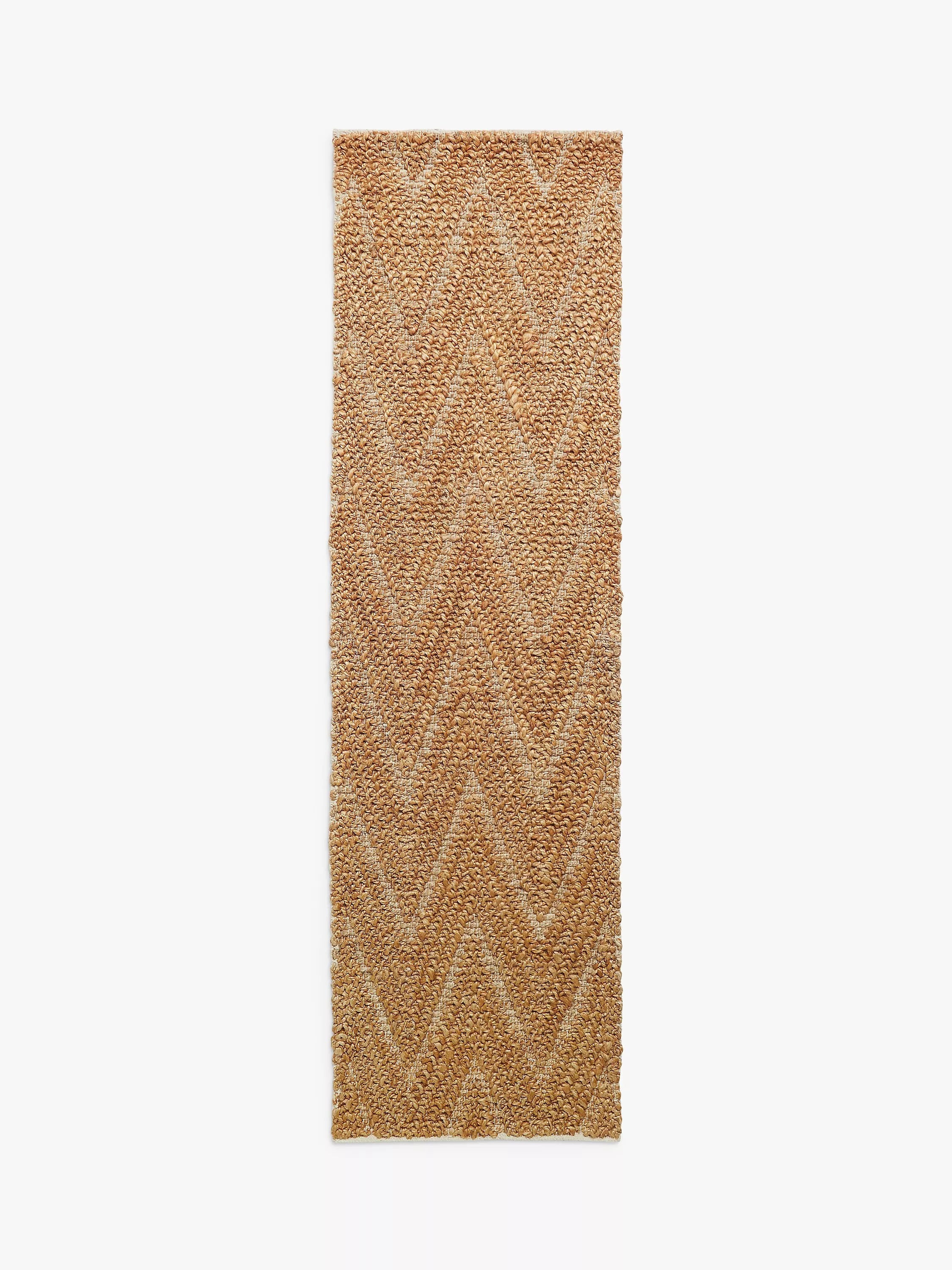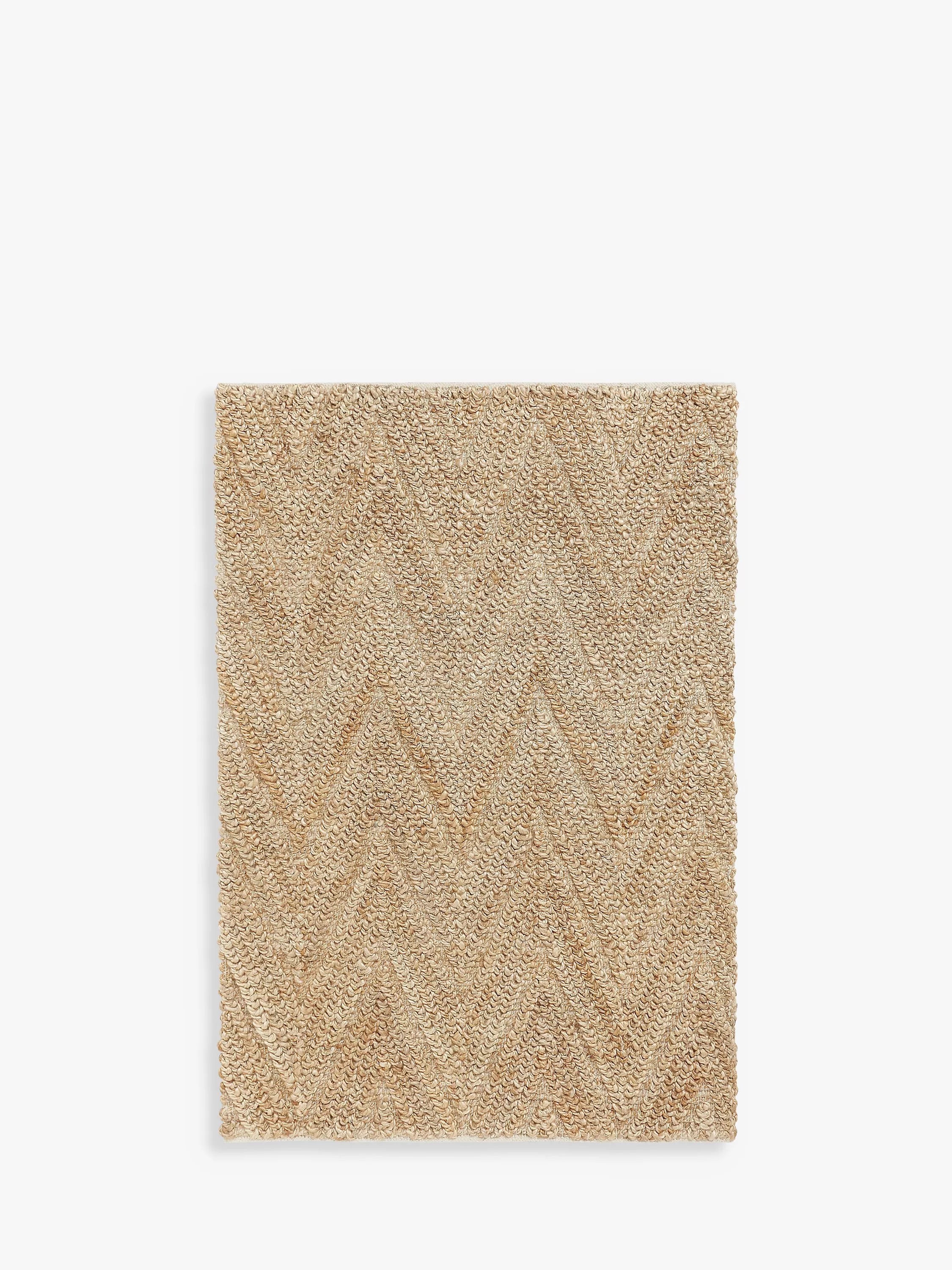 Als Alternative zu rein farblichen Akzenten bietet dieser ungewöhnliche Jute-Teppich eine strukturierte Oberfläche in Chevron-Form. Er ist sehr dick und dicht gewebt, um das Fusseln zu minimieren, obwohl es anfangs zu leichten Fusselbildung kommen kann.