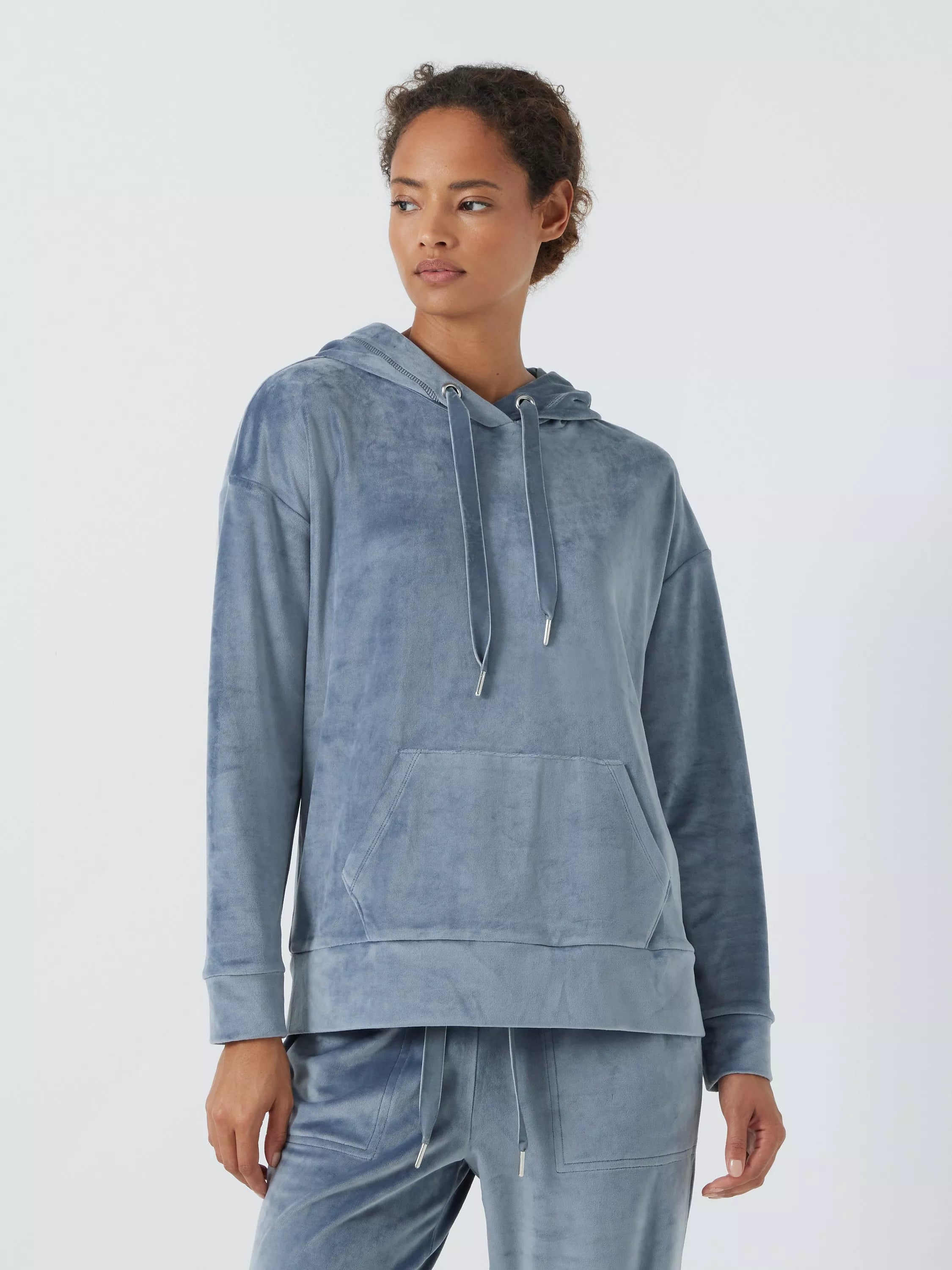 Der klassische Kapuzenpullover mit Kängurutasche vorne ist aus Velours gefertigt und bietet so die perfekte Balance aus Wärme, Strapazierfähigkeit und einem weichen Glanz, der sich angenehm anfühlt und toll aussieht. Für einen besonders hochwertigen Look haben wir außerdem Samtbänder an der Kapuze angebracht.