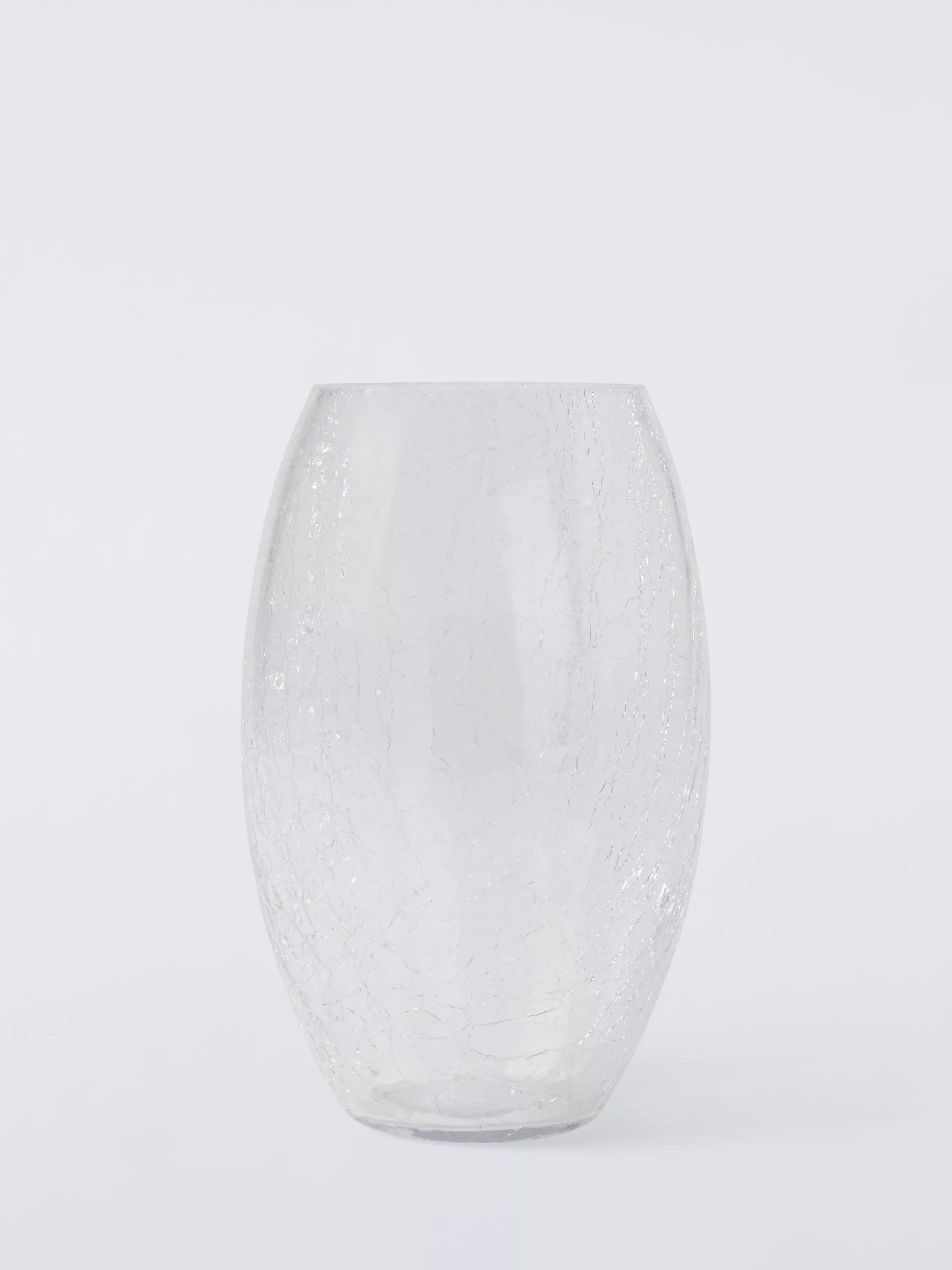 Eine fassförmige Vase aus Natronkalkglas mit Craquelé-Oberfläche.