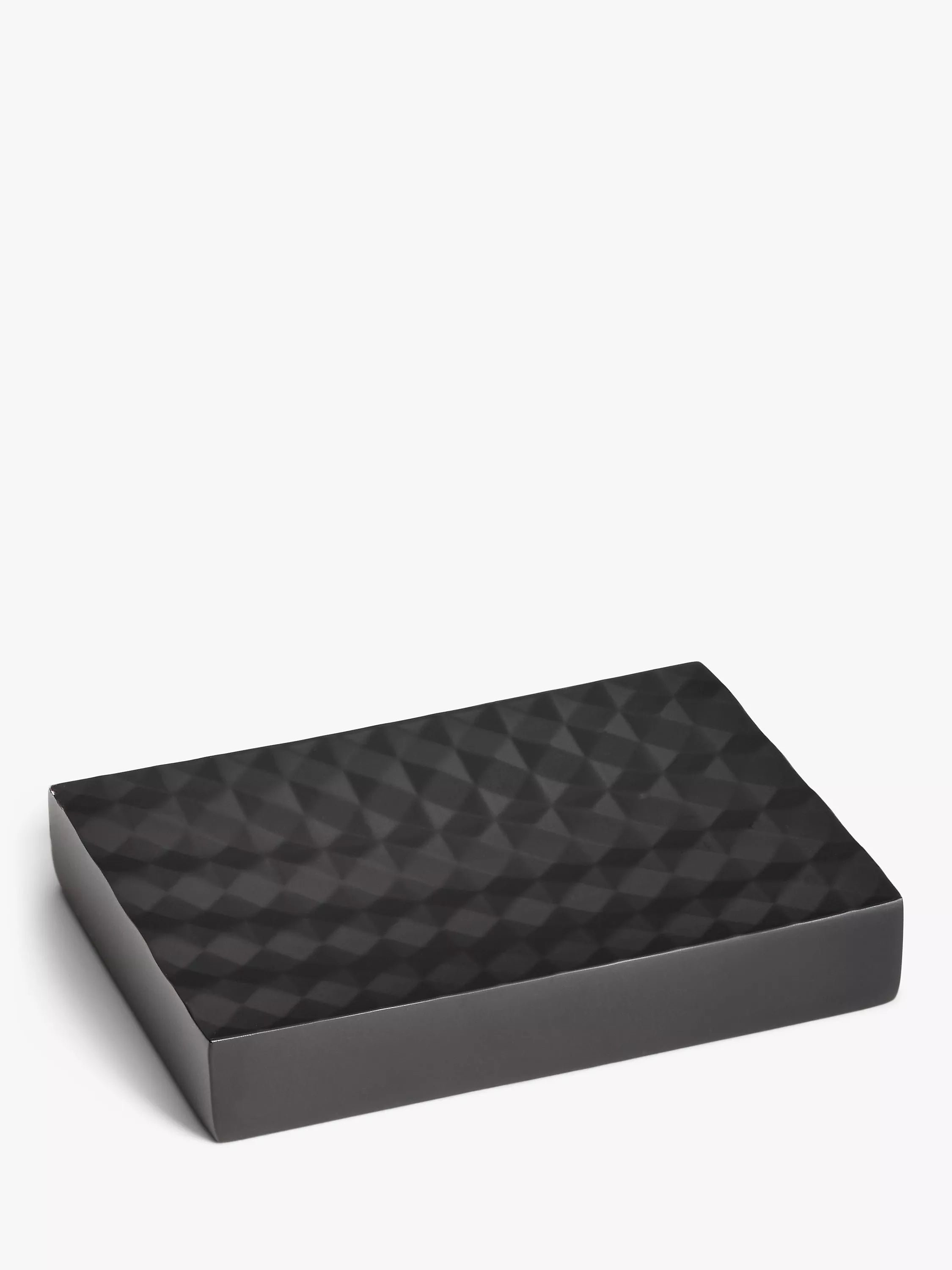 Add a touch of modern elegance to your bathroom with this stylish soap dish. Its sophisticated design complements any bathroom décor, making it a perfect addition to your daily routine. Enjoy the subtle light reflection from its textured surface.