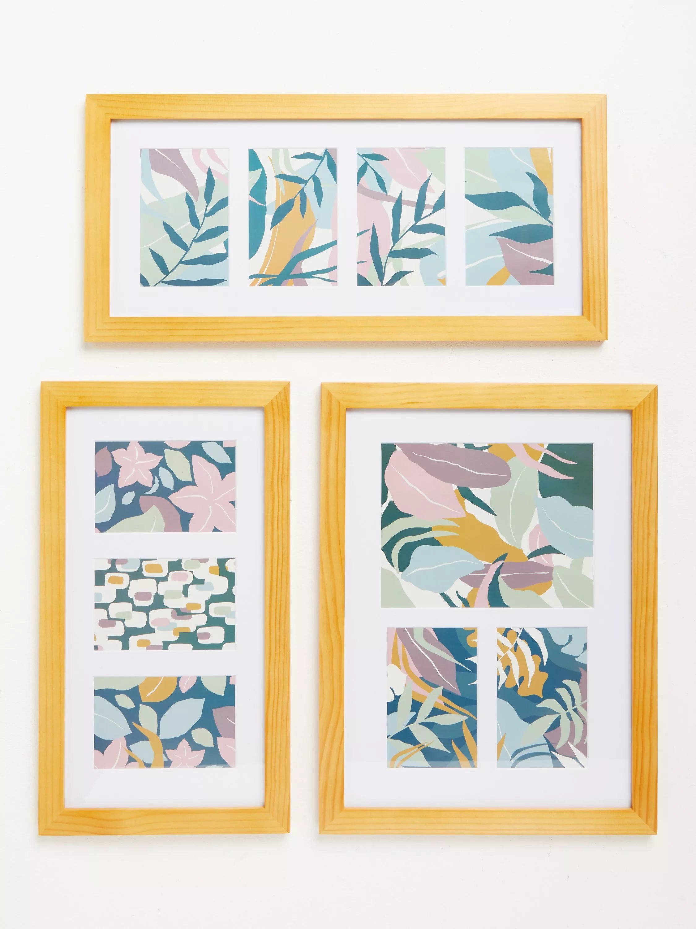 Das Set beinhaltet Fensterhalterungen und sofort einsatzbereite Kunstwerke. Unsere Galerie-Sets enthalten Layoutvorlagen und Anleitungen, die Ihnen helfen, eine stilvolle und harmonische Wandgestaltung zu kreieren.