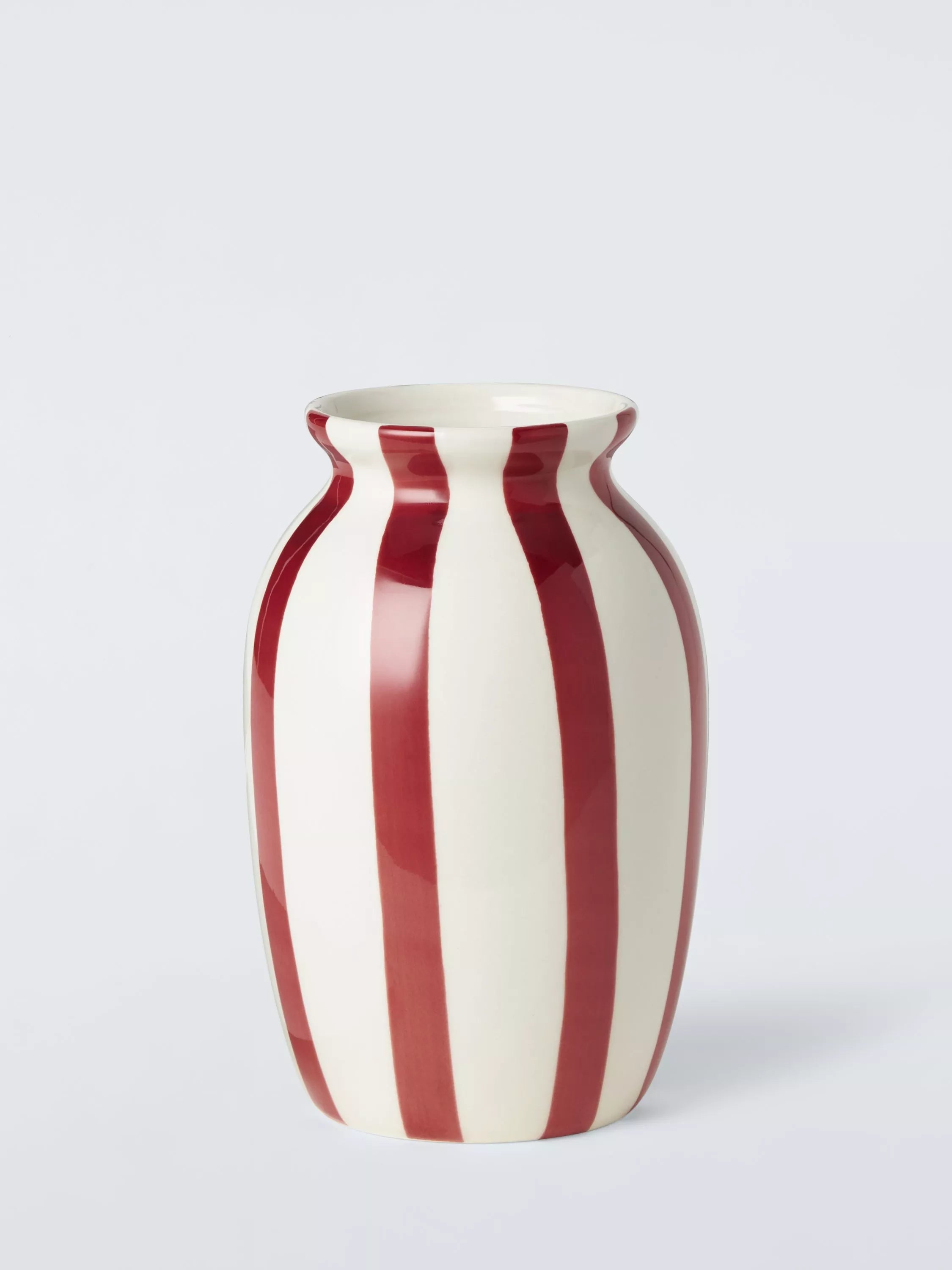 Diese handbemalte, glasierte Steingutvase mit bonbonfarbenen Streifen verleiht Ihrem Raum einen Farbtupfer und Charakter.