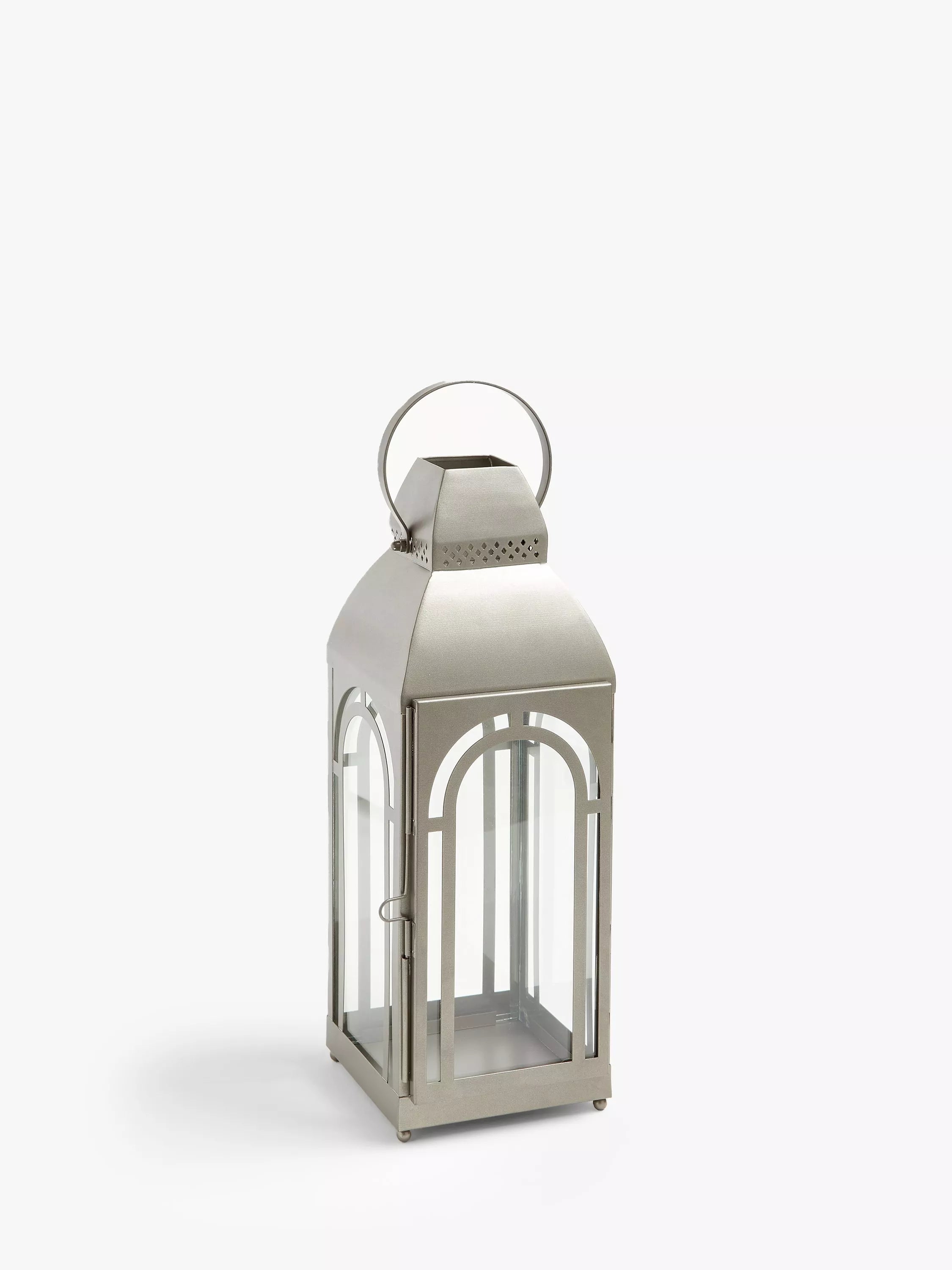 Add a touch of elegant ambiance to your home with this charming small John Lewis Henley Lantern. Its timeless design, crafted from iron and glass with a silver finish, creates a warm and inviting glow perfect for any setting. Ideal for adding a sophisticated touch to your interior decor.