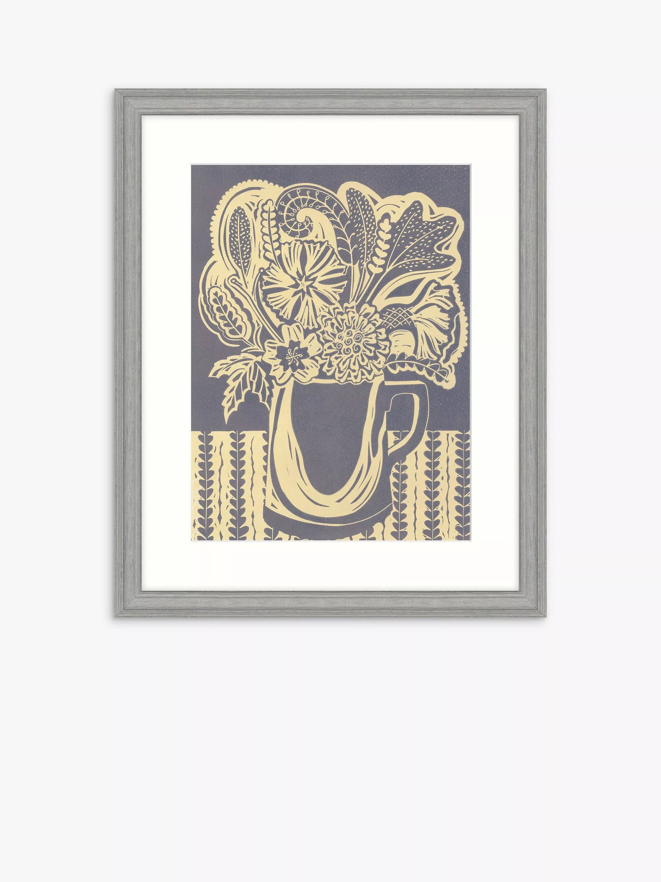 Ein moderner Blumendruck von Kate Millbank. Der Druck ist verglast und in einem Passepartout mit Holzoptik gerahmt, sodass er sofort an die Wand gehängt werden kann.
