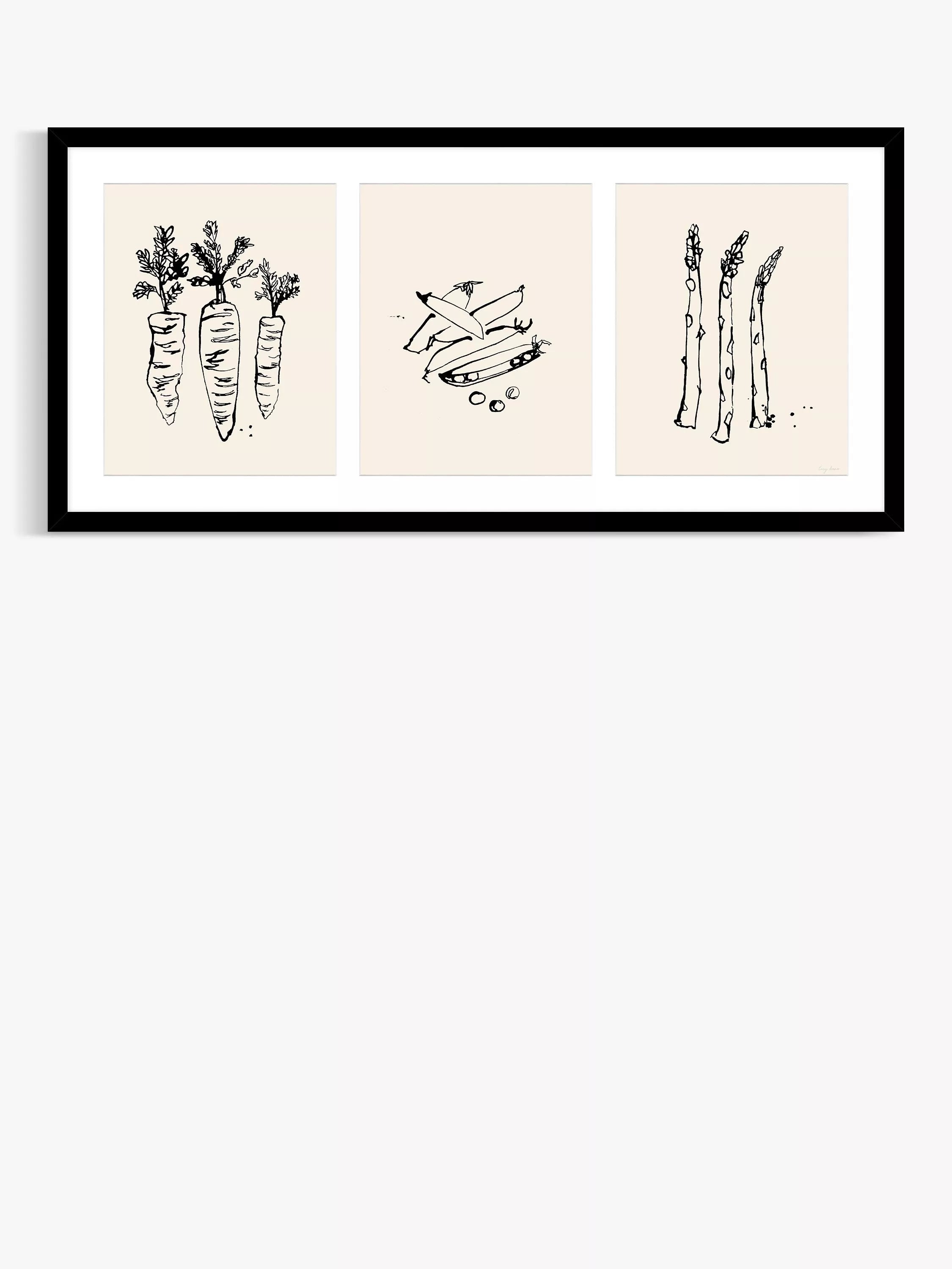 „Garten-Trio“ von Lucy Deaner – ein Muss für Gärtner und Gemüsefans. Dieser in Großbritannien gefertigte, verglaste Kunstdruck ist in einem modernen schwarzen Rahmen gefasst und kann sofort an die Wand gehängt werden.