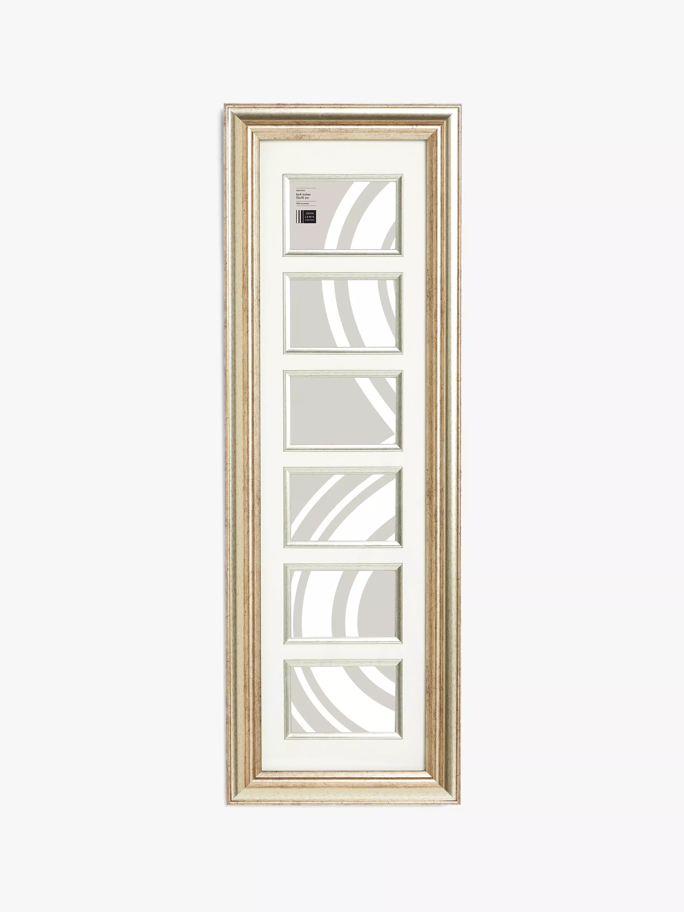 Präsentieren Sie eine Reihe von Fotos oder Bildern in diesem länglichen Bilderrahmen im eleganten Antik-Stil. Er kann sowohl horizontal als auch vertikal an der Wand aufgehängt werden.