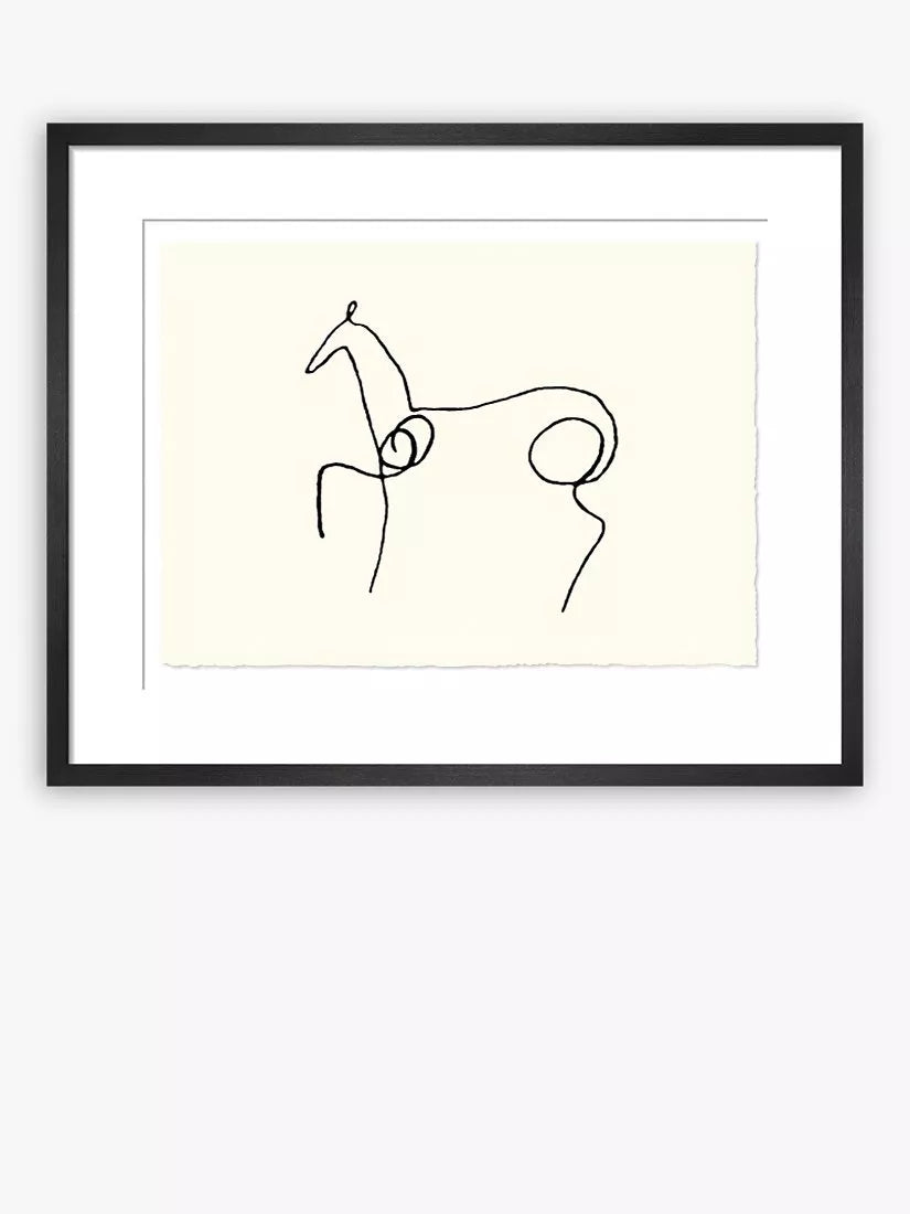 „Das Pferd“ von Pablo Picasso. Zu Beginn des 20. Jahrhunderts ließen sich zahlreiche Künstler, darunter Pablo Picasso, von den einfachen, stilisierten Darstellungen außereuropäischer Kulturen beeinflussen. So schuf Picasso eine Reihe vereinfachter Tierzeichnungen, darunter „Das Pferd“, die alle mit einer einzigen, durchgehenden Linie ausgeführt sind.