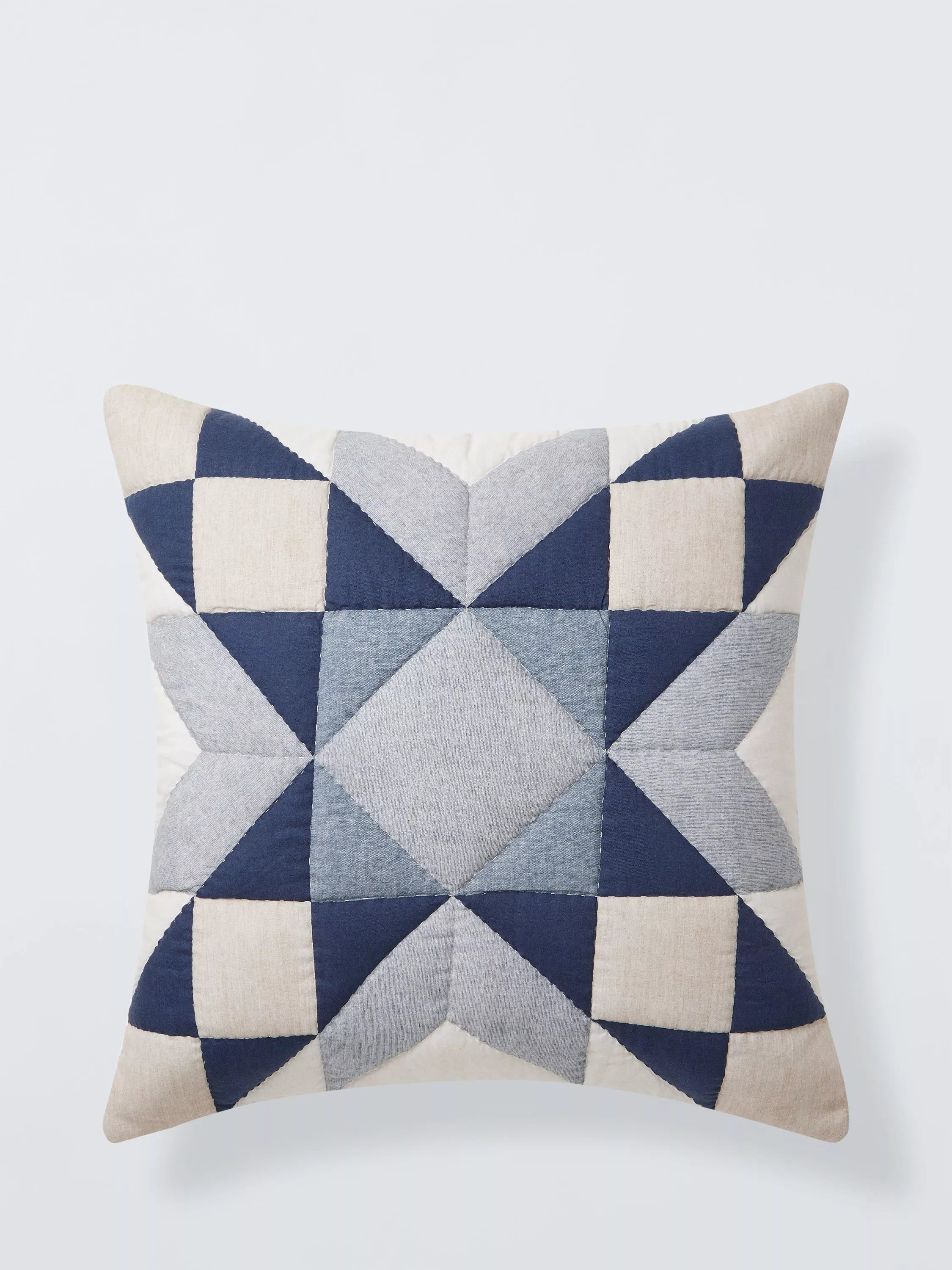 Die Patchworkblöcke dieses voluminösen Kissens sind traditionell gesteppt und bilden eine einfache Sternform. Die Rückseite ist einfarbig.