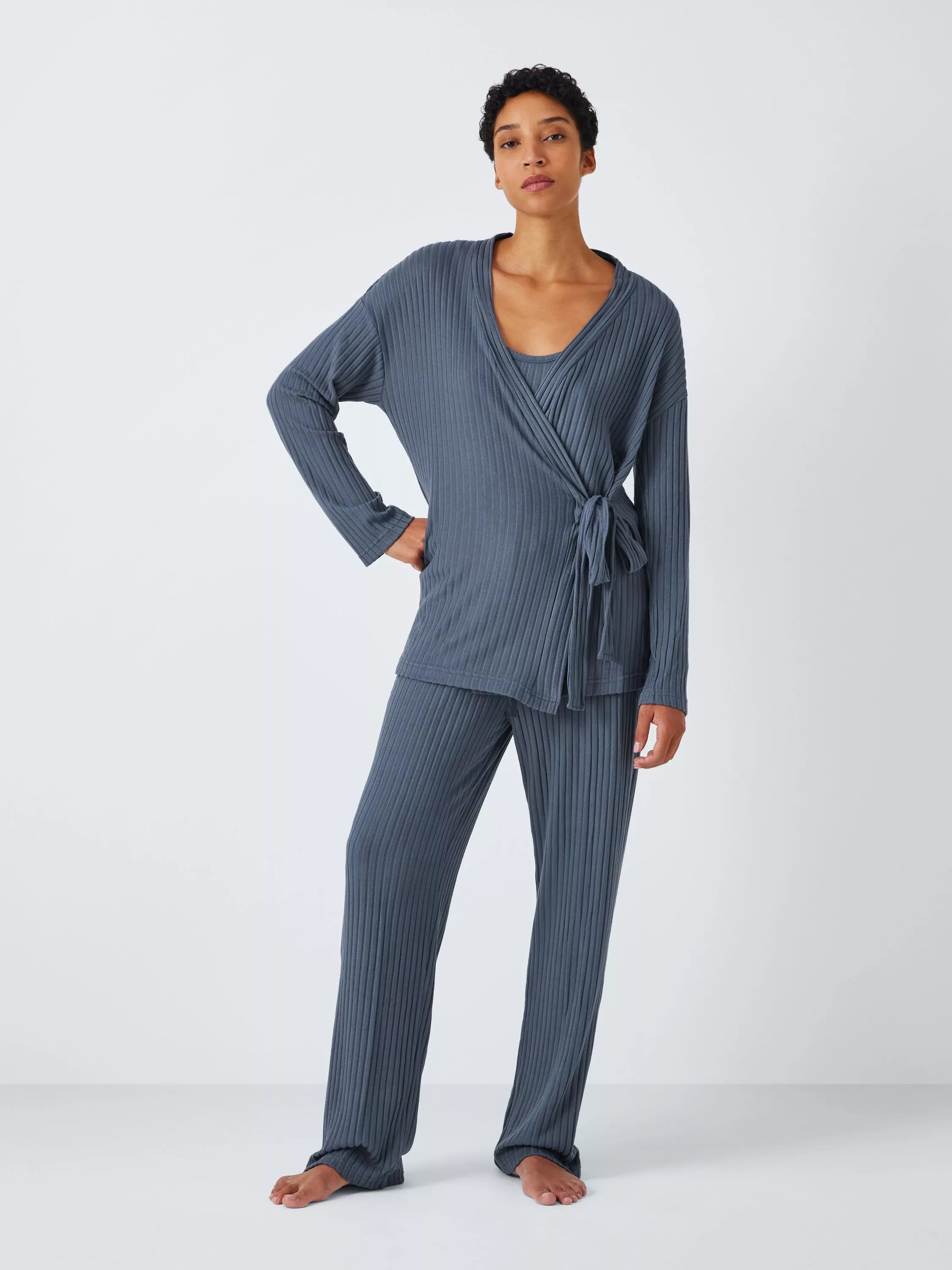 Dieses Lounge-Set aus weichem, geripptem Stoff besticht durch seine schicke, vom Ballett-Stil inspirierte Wickelform.